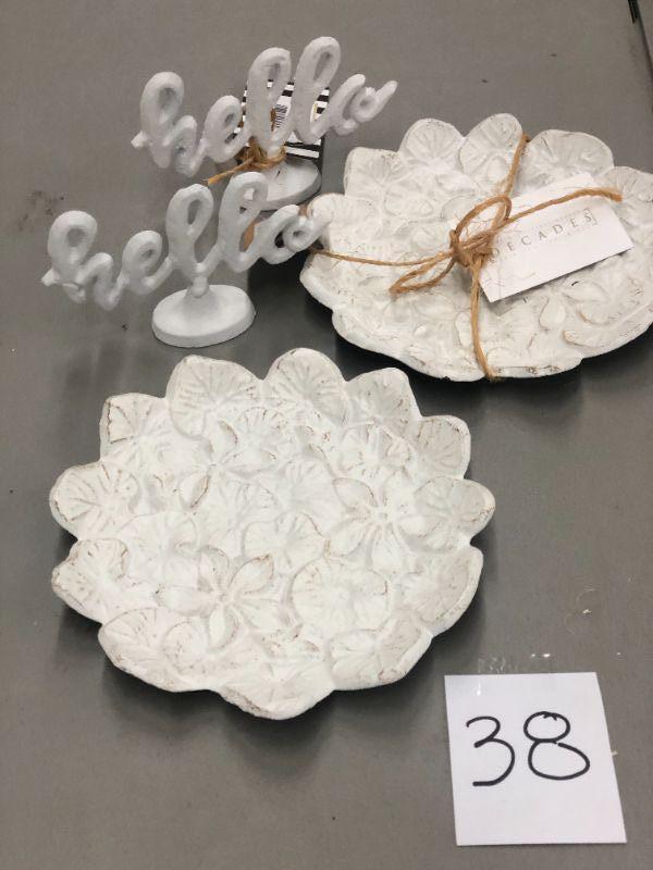 Lot 38 Pair of Jewelry Trinket Trays & Pair of Hello Stands