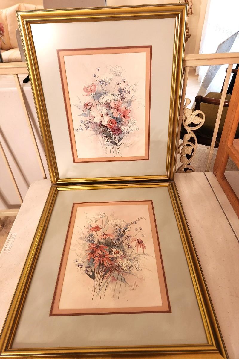 Lot #38 Pair of Vintage Brenda Mock Floral Prints in frames