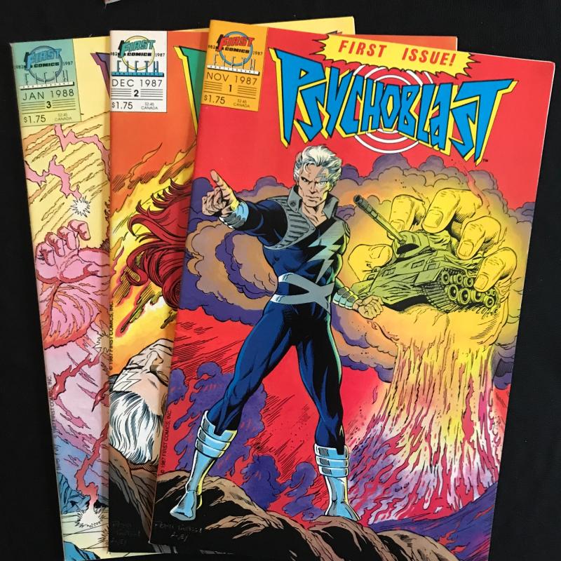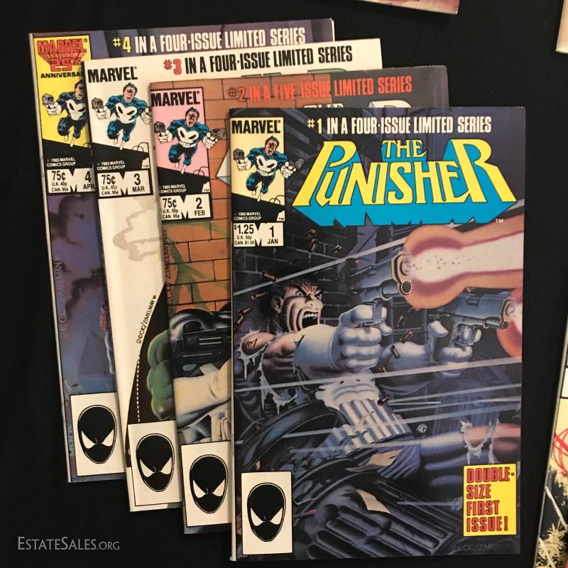 12 issues of "Power Pack" by Marvel (includes first issue), 9 Issues of "Psychoblast" by First Comics (includes first issue), 3 issues of "PSI Force" by Marvel (includes first issue) and 7 issues of "The Punisher" (includes first issue). Several other issues in this lot of 54 total issues. See photos for details. Fits in ONE Priority box or local pick up in Asheville, NC.
