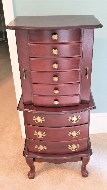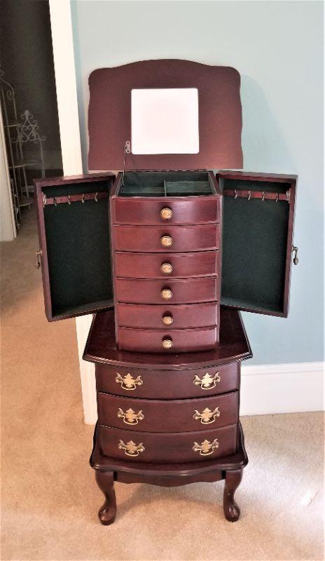 Lot #38  Queen Anne Style Jewelry Armoire with Mirror and Swing out doors