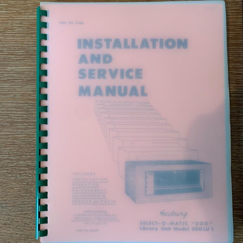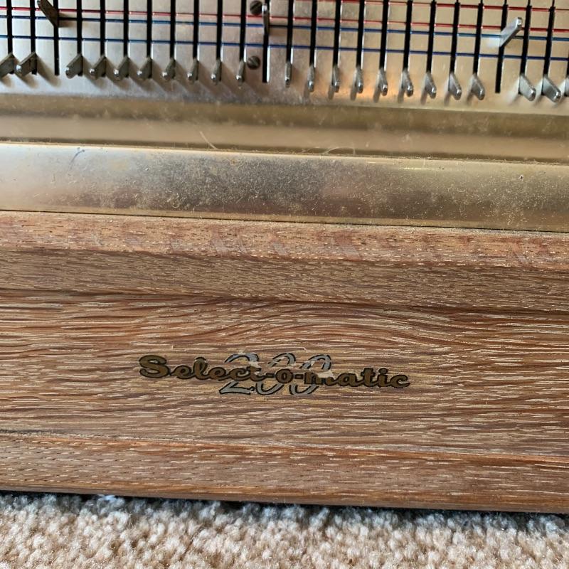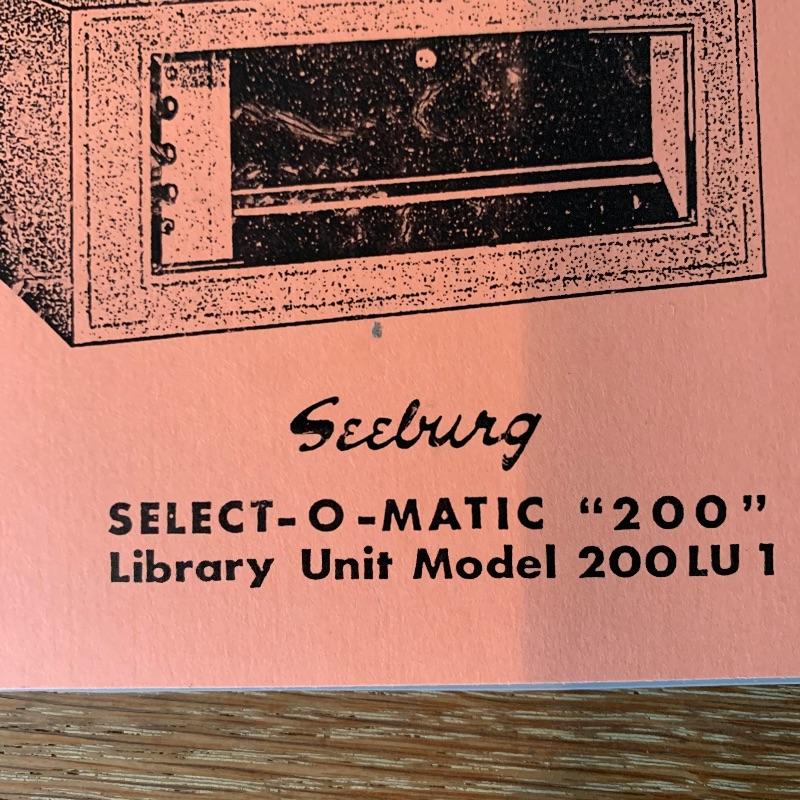 This is a Seeburg Select-O-Matic 200 record player. It appears to hold 100 records at a time and plays 78s. This lot includes two installation and service manuals. Machine powers on and selector moves when plugged in!