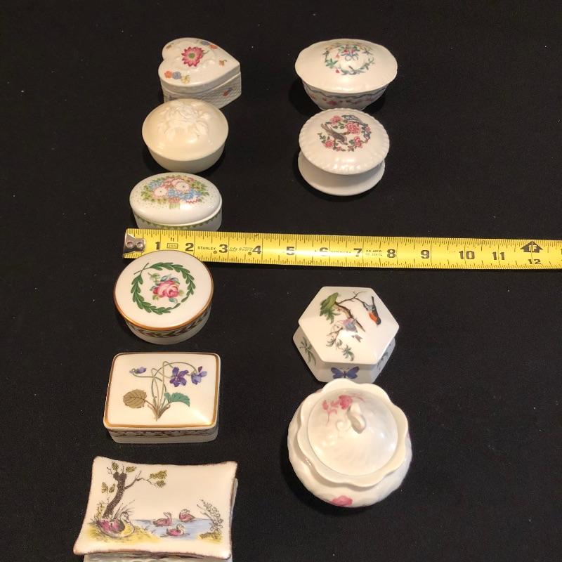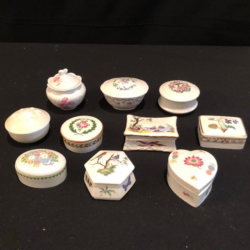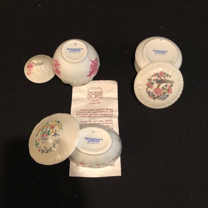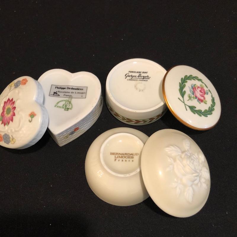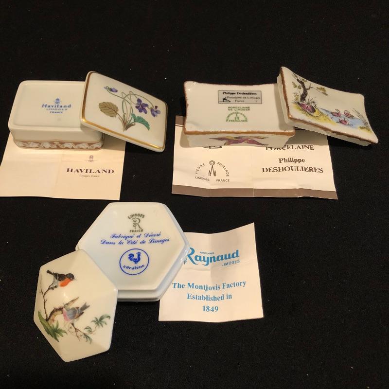 This is the last and largest collection of Limoges boxes in this estate. Some have their original information booklet enclosed, see images for makers marks, etc. The other Limoges lots are 31 & 35.