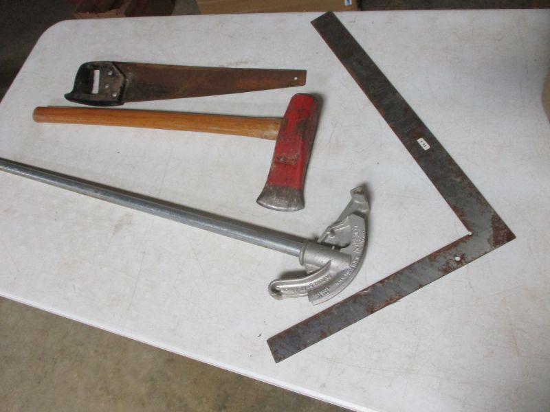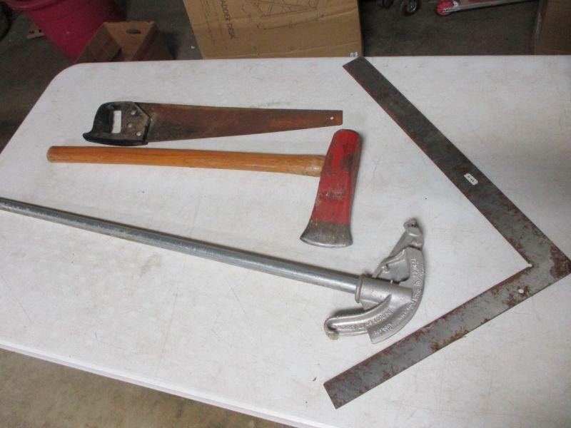 Lot 38 - Tools - Pipe Bender - Axe - Saw - Square