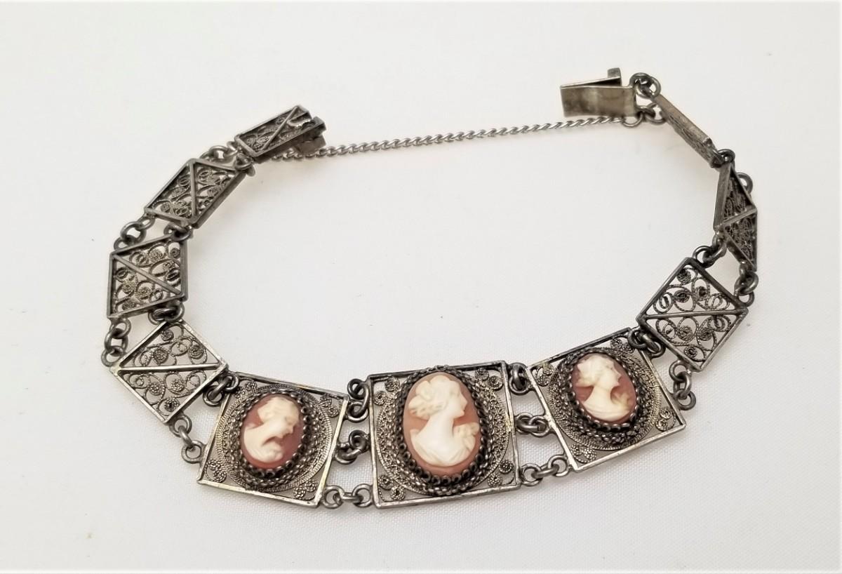 Lot #38 Vintage 800 Silver Cameo Bracelet