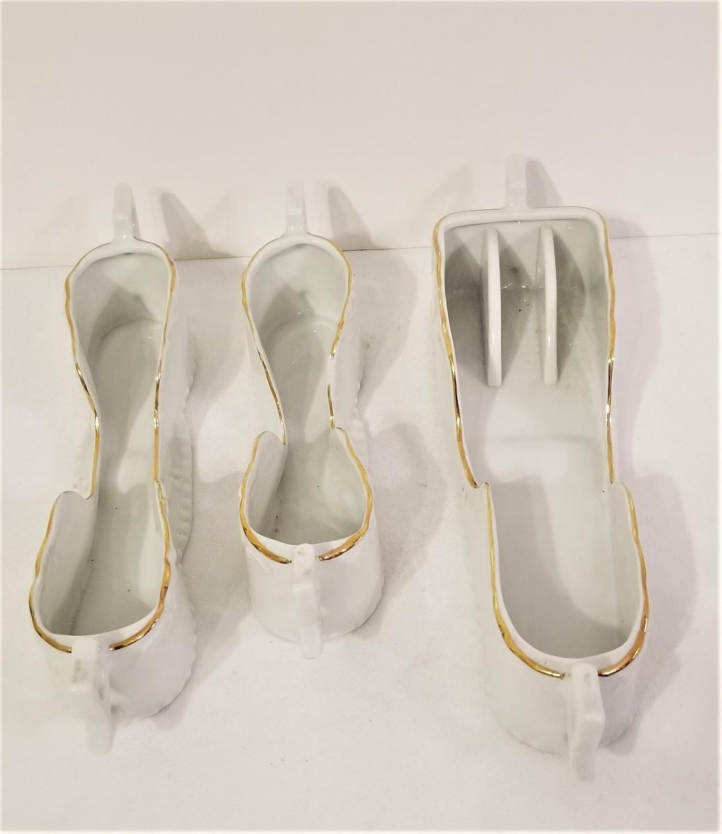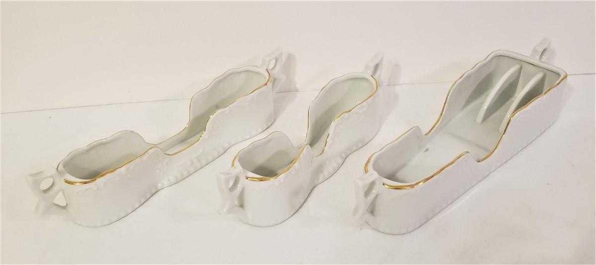 Three china silverware caddies to hold your flatware for a buffet - marked "Japan." Largest is 12" long and 2" tall. Good vintage condition.