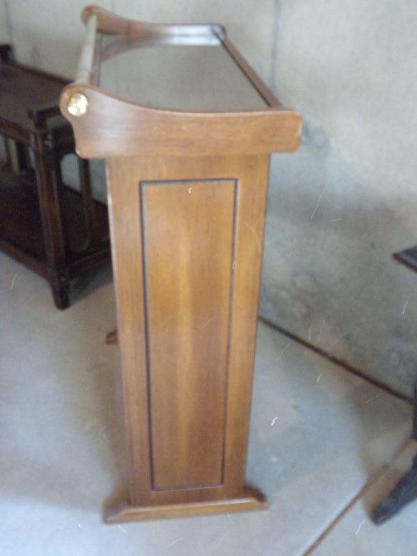 MIRRORED TOP, WOODEN BASE, MEASURES 26"X12"X33"
