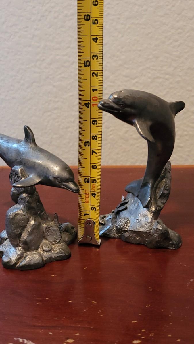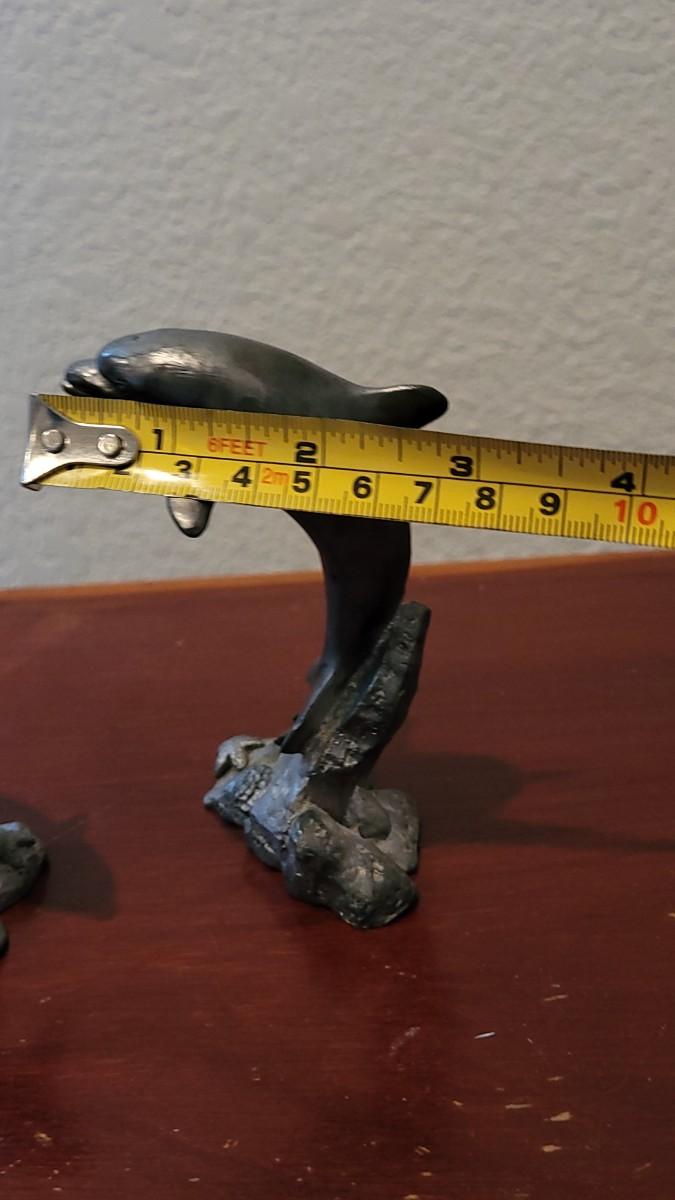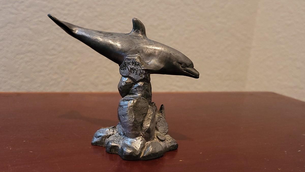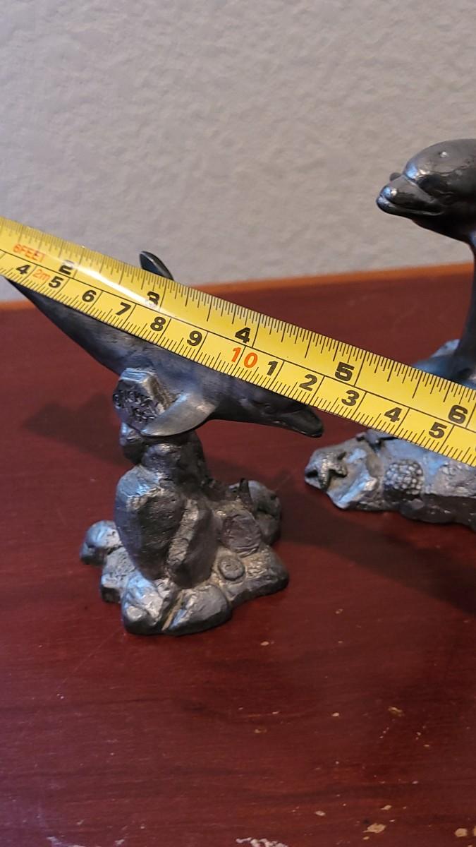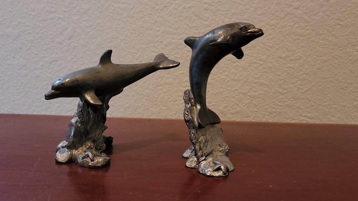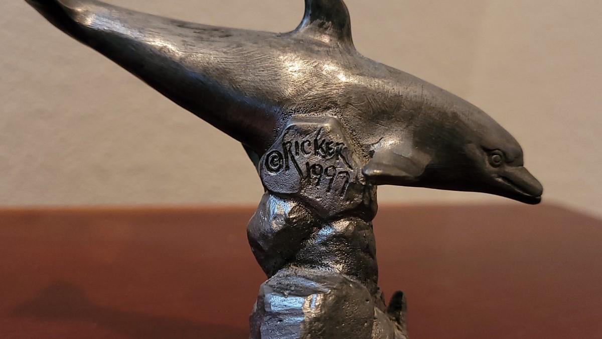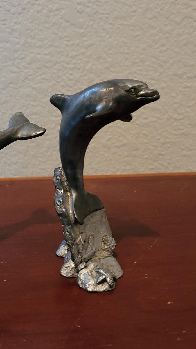 Lot 380: (2) Vintage Michael Ricker Pewter Dolphin Sculptures (b)