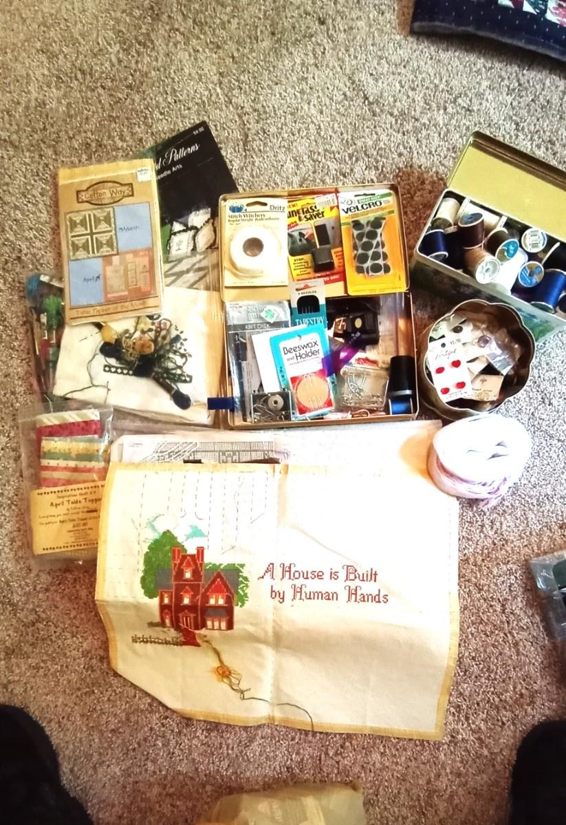 LOT 380 THREAD-BUTTONS-TABLE TOPPER-MORE SEWING ITEMS