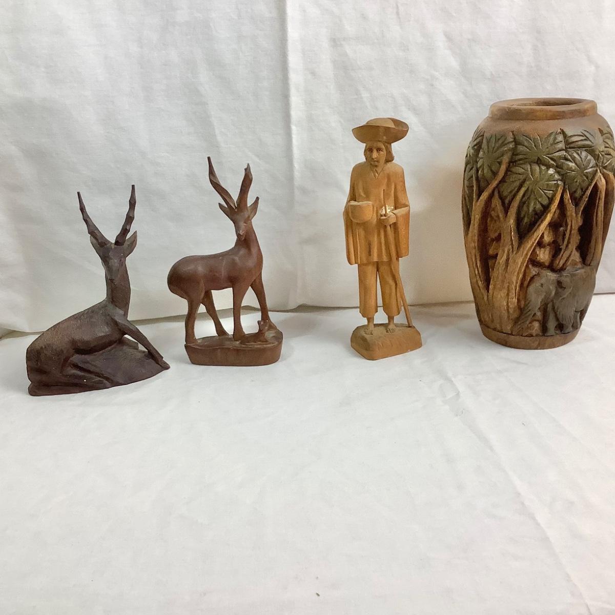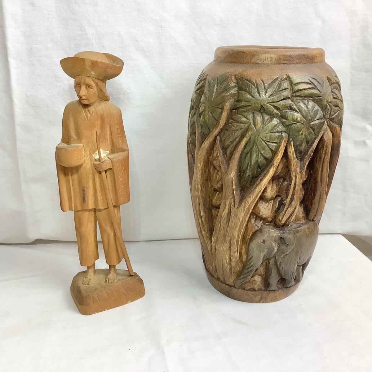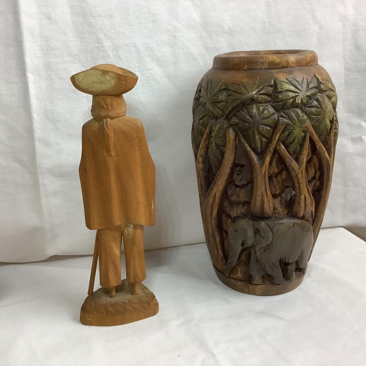 Lot 380. Lot of Hand Carved Wooden Figurines & Vase