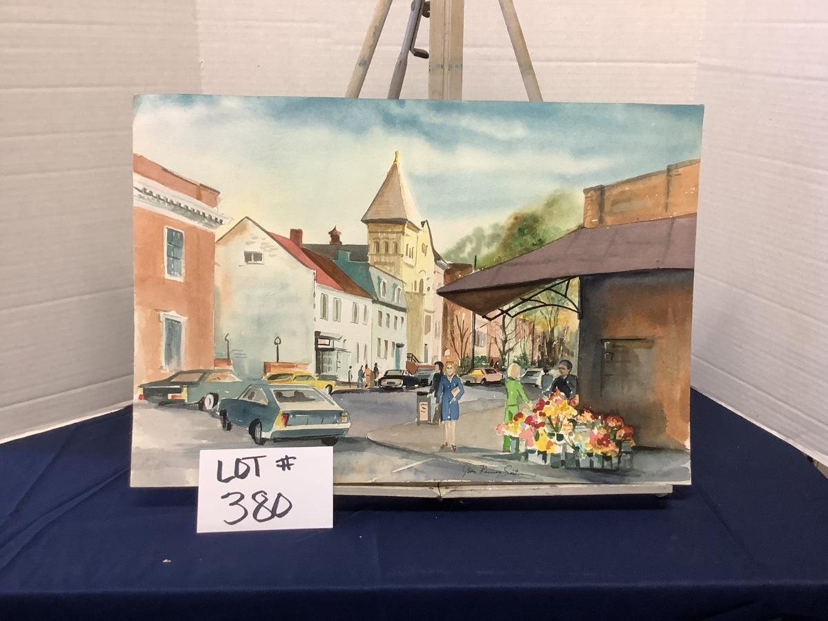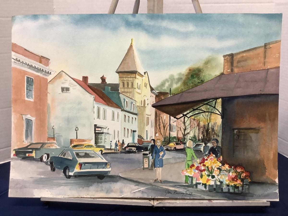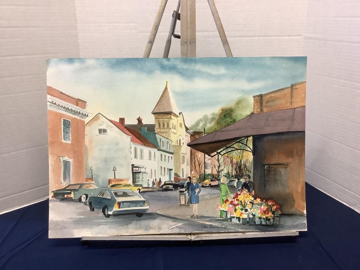 Signed Original Watercolor Painting by Jean Rainey Smith “ Busy Corner “