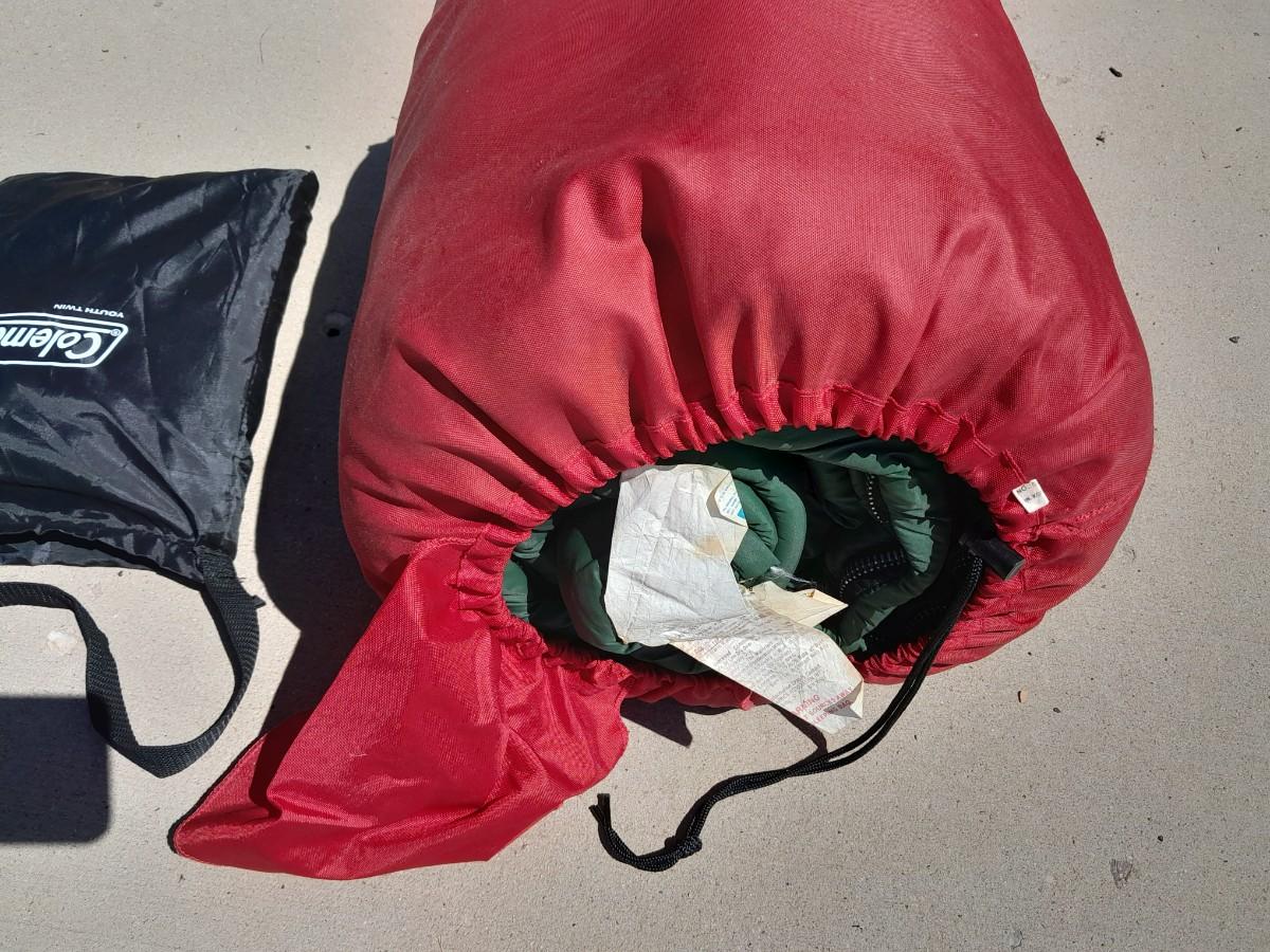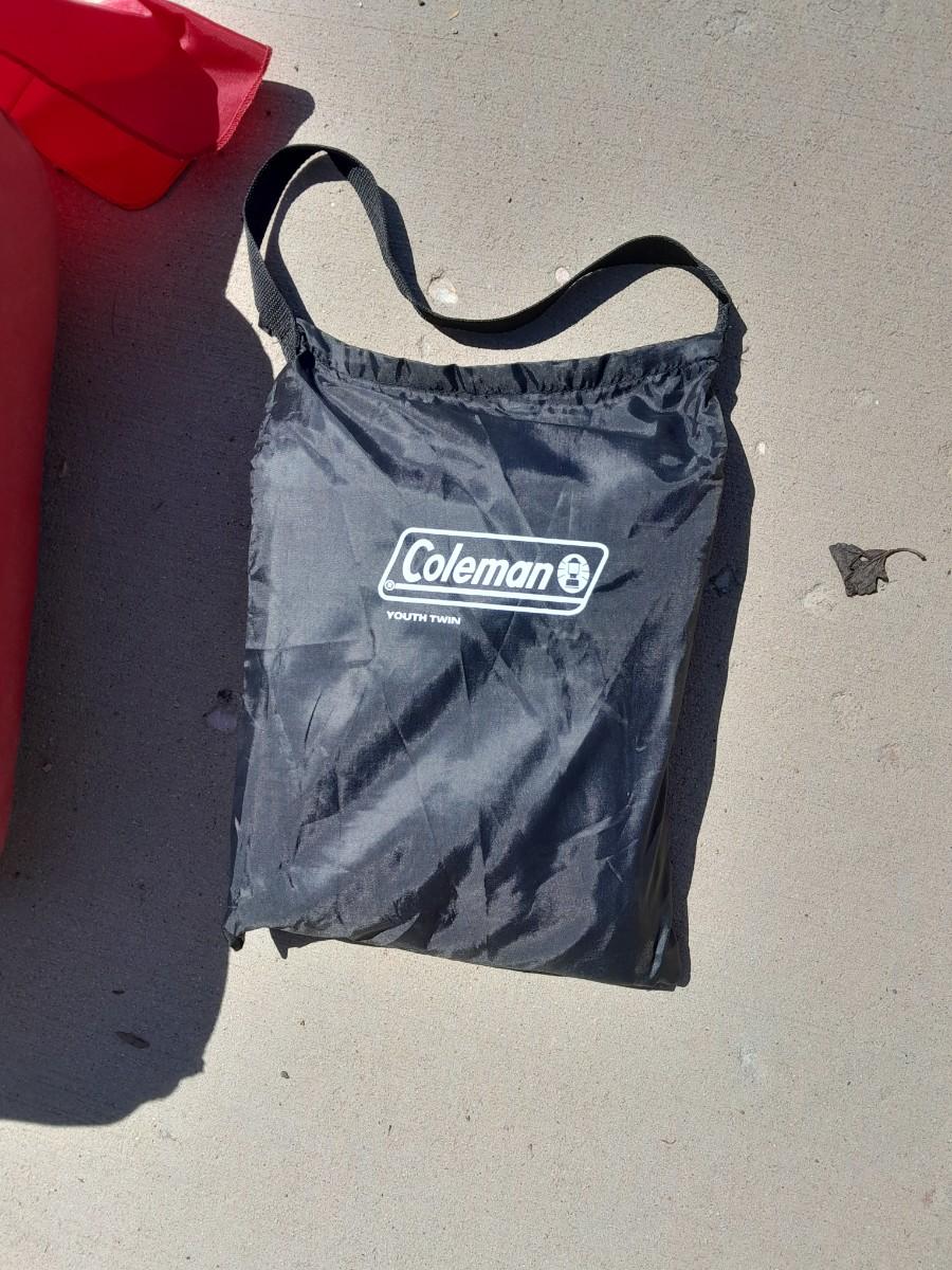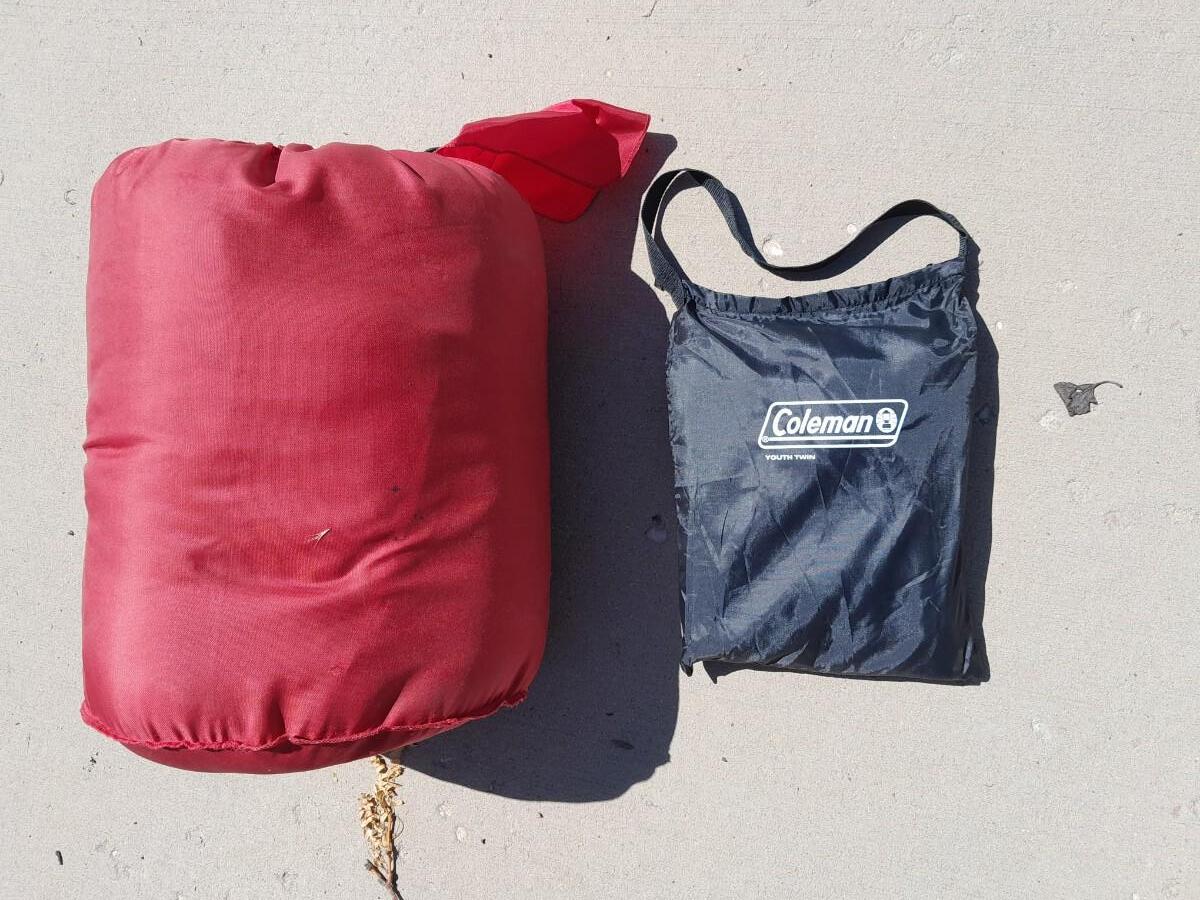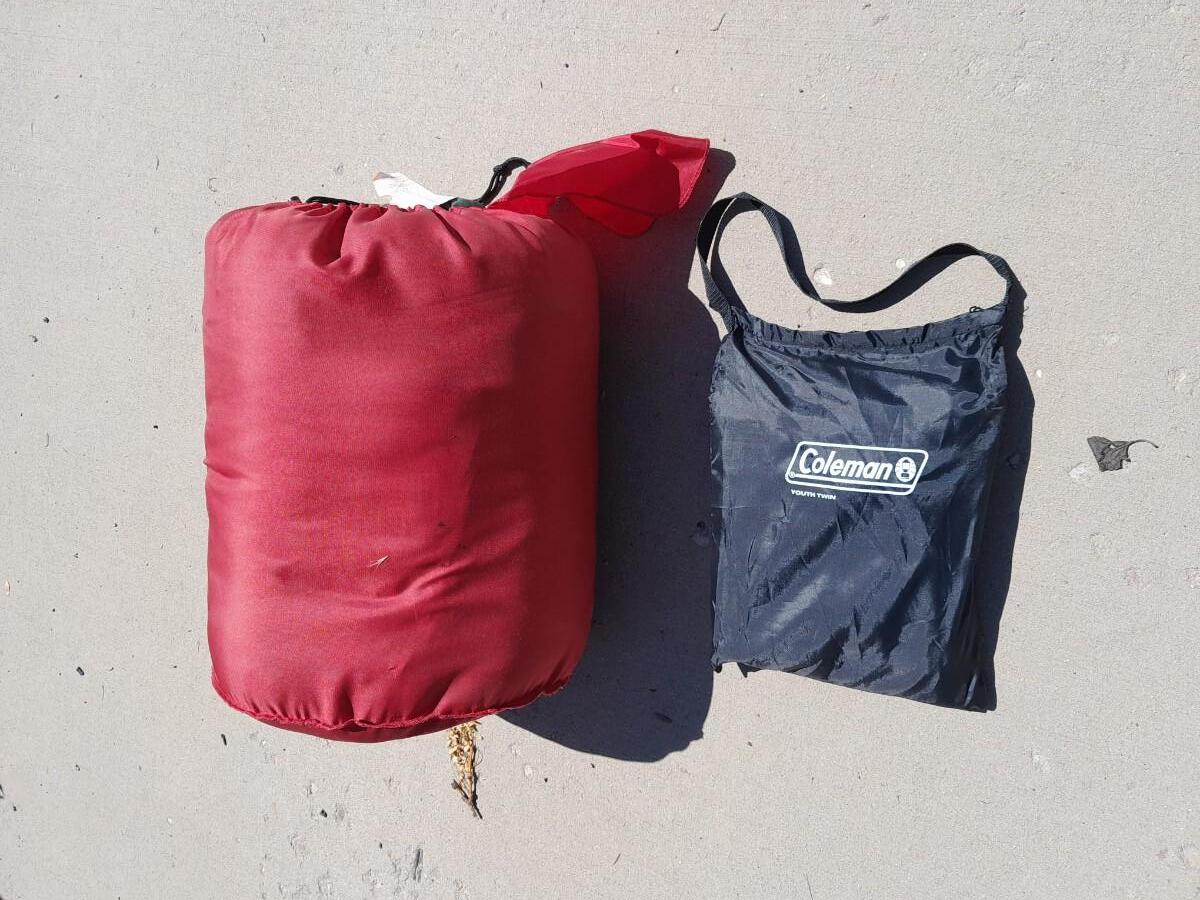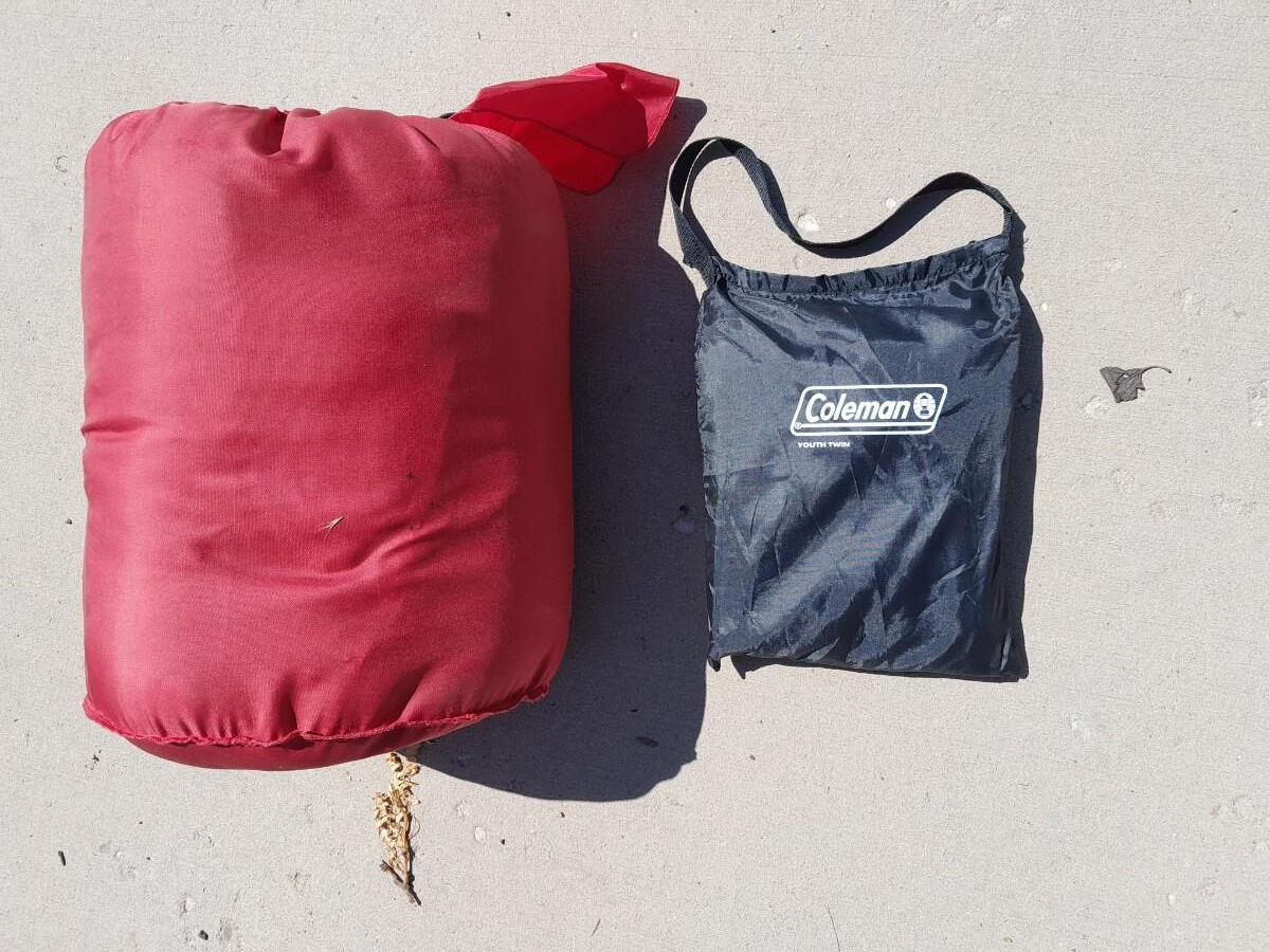 SLEEPING BAG AND COLEMAN TWIN AIR MATTRESS