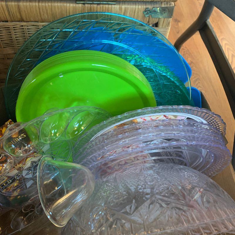 VARIOUS SIZE PLASTIC BOWLS AND TRAYS