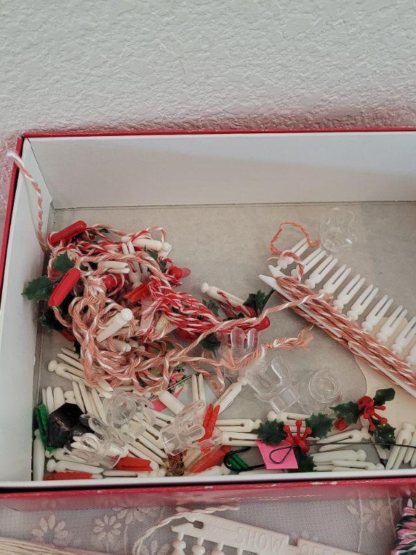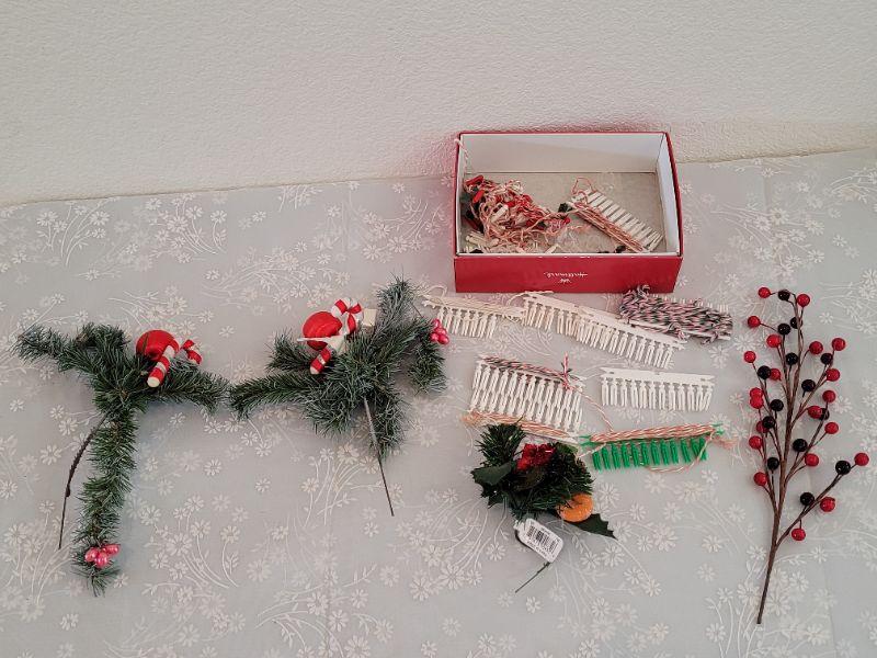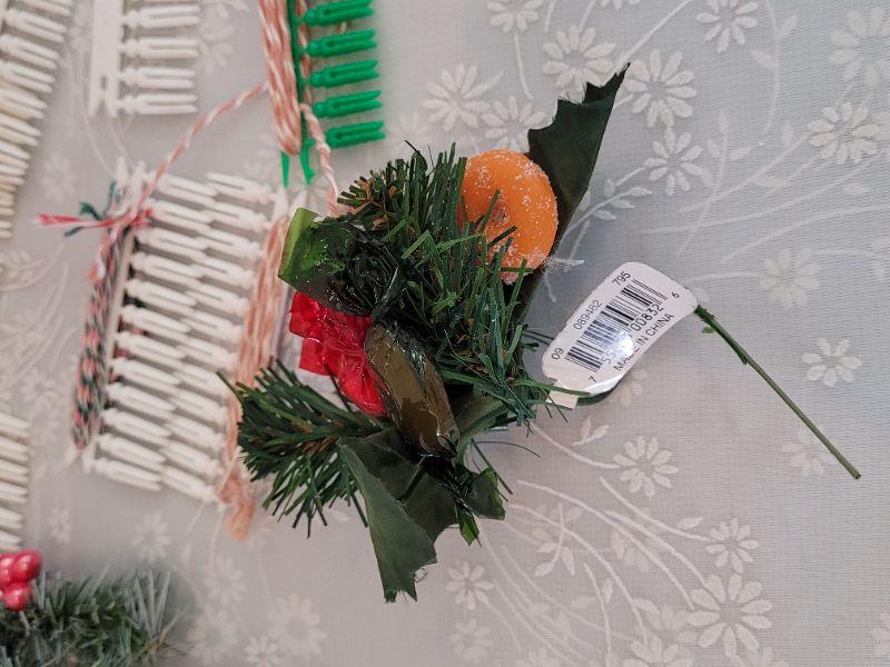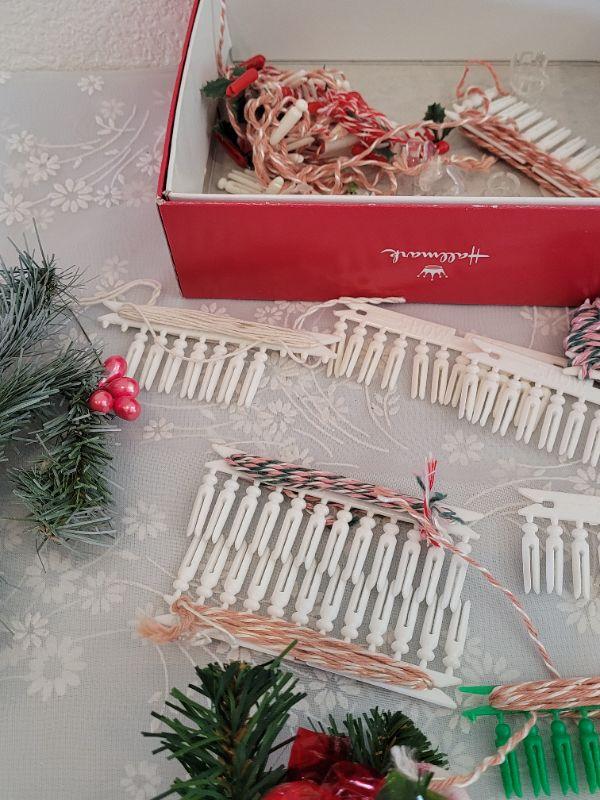 Lot 381: Vintage Christmas Greenery and Christmas Card Tiny Clothes Pins and String