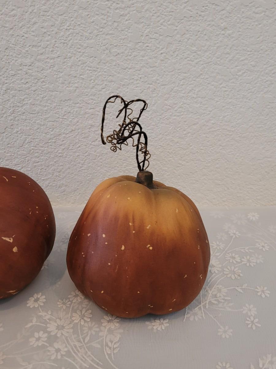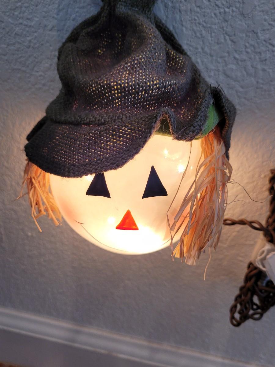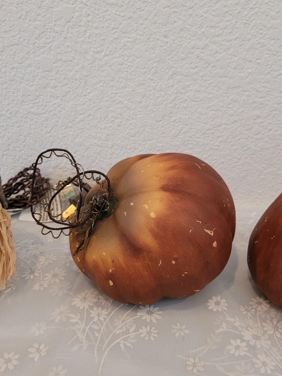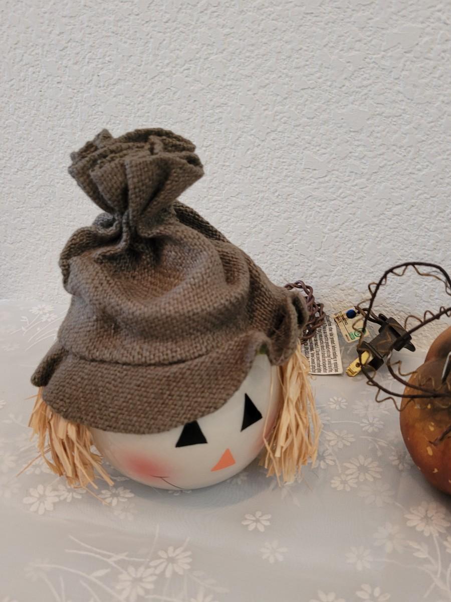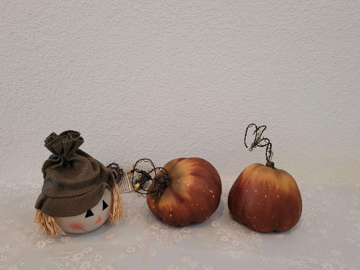Lot 381: Ceramic Pumpkins and Light Scarecrow Head Deco
