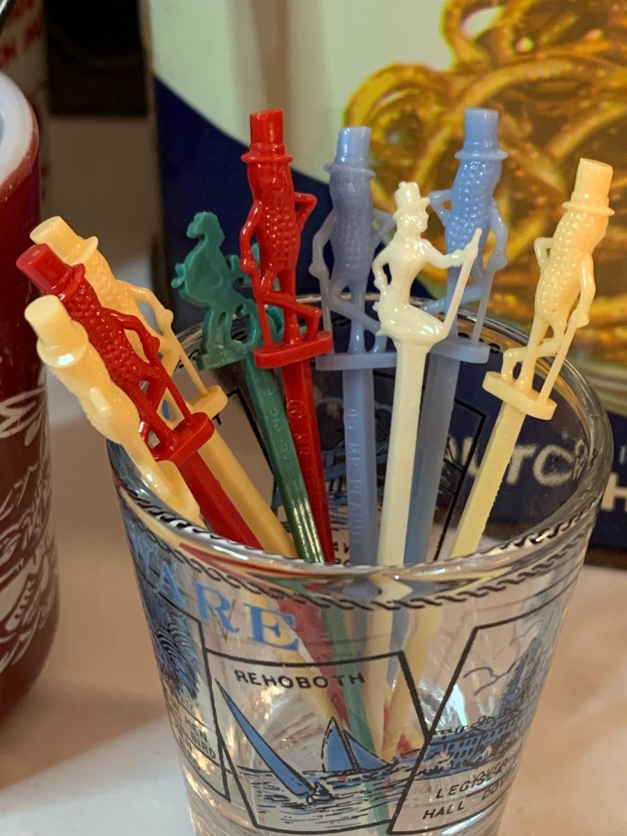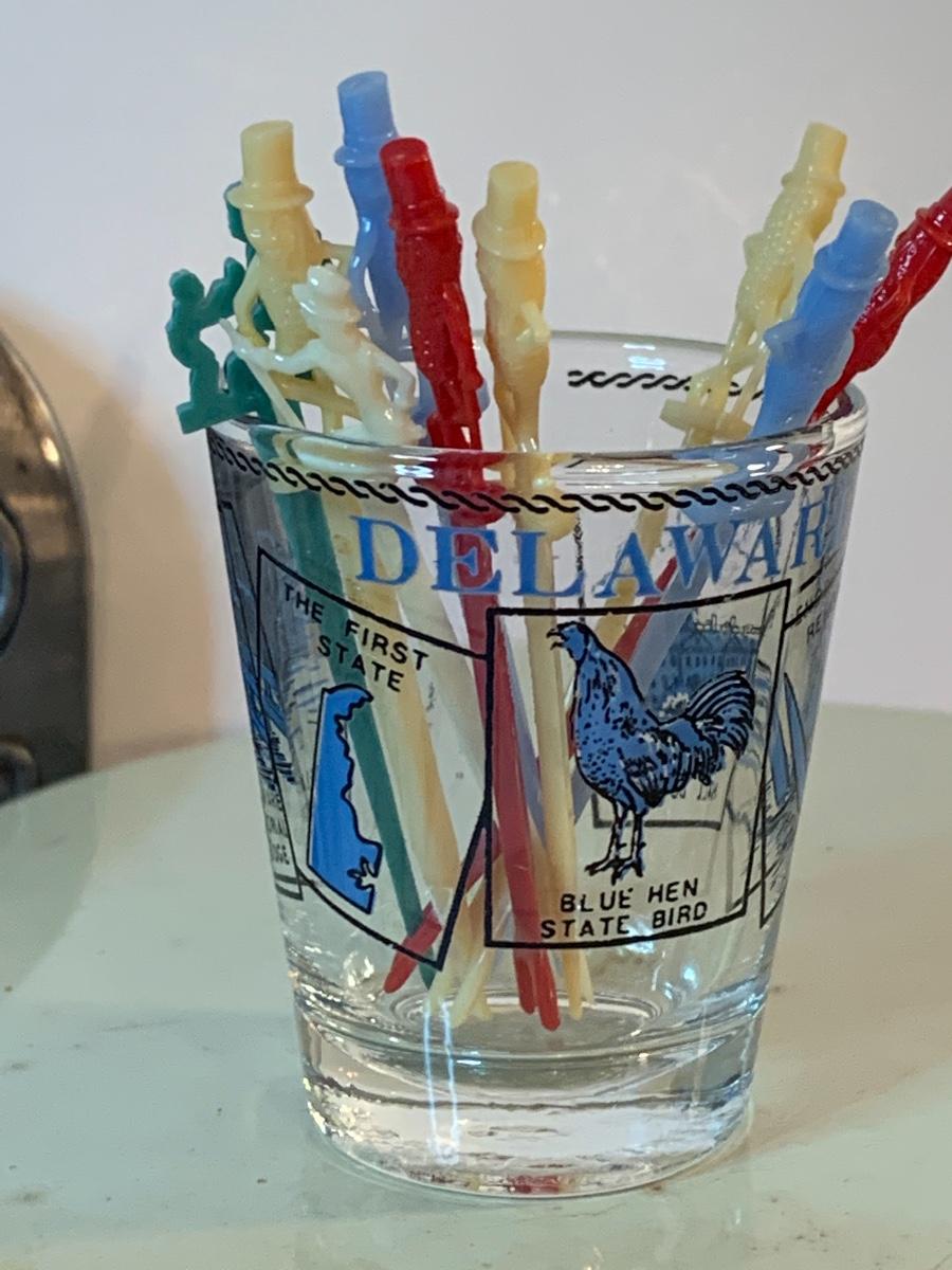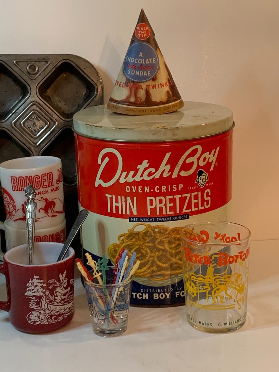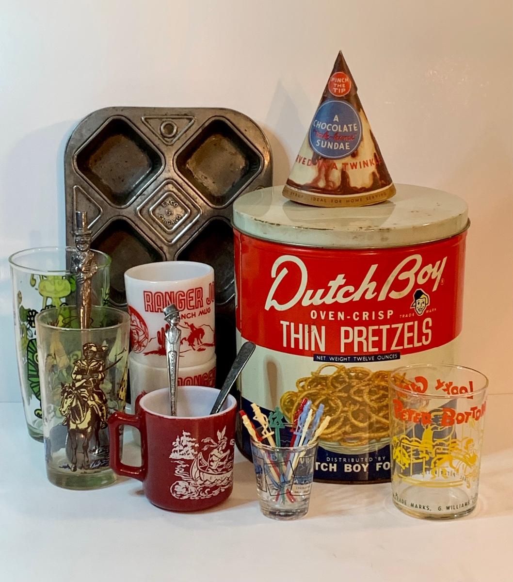 Nice "Kitschy" lot of vintage beverage glasses and milk glass mugs, Planters Peanut hors d" oeuvre picks, Ekco tin, Dutch Boy tin and more. Please see all pictures as they are the best representation of the items. The pictures show condition, measurements if taken, and what is included in the lot. Due to the large amount that we photograph and the time frame, we are not always able to take measurements. All items unless noted, are pre-owned and have been used. If you purchased furniture, you must bring help. We do not allow one person to carry large furniture out on their own. Bring help, tools and a truck for the safety of our client’s homes, and your personal safety. Company policy. Thank you.