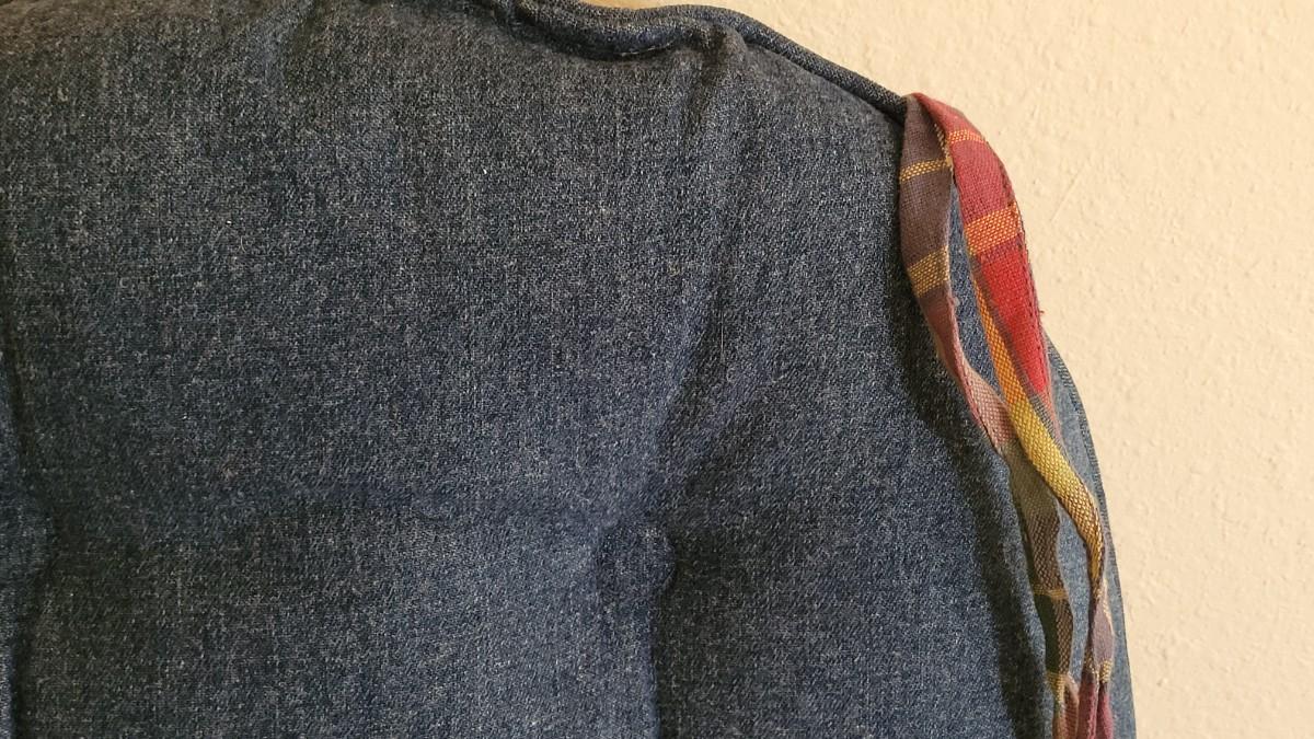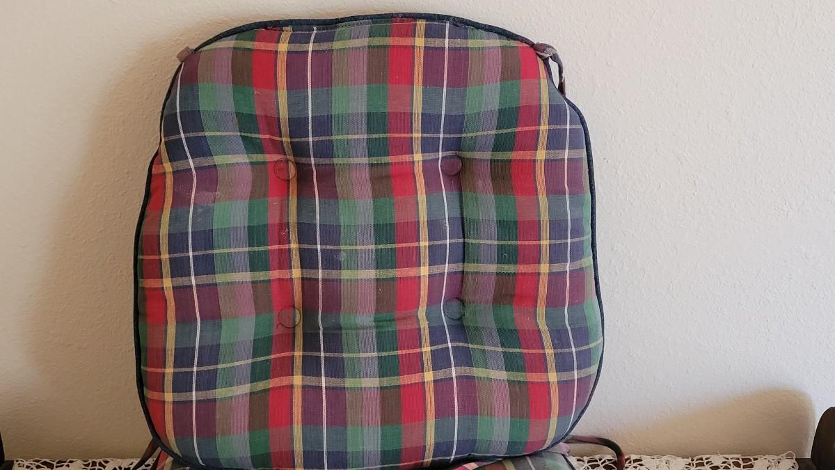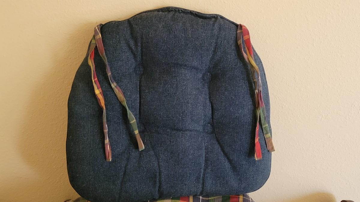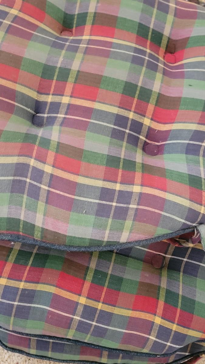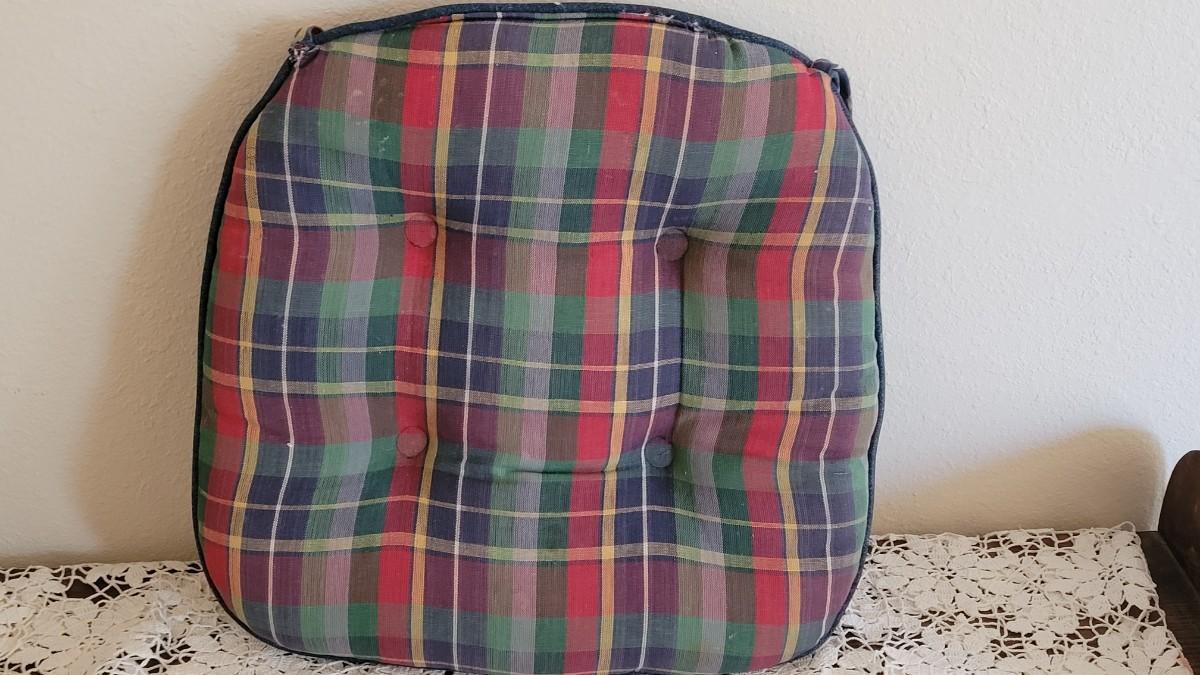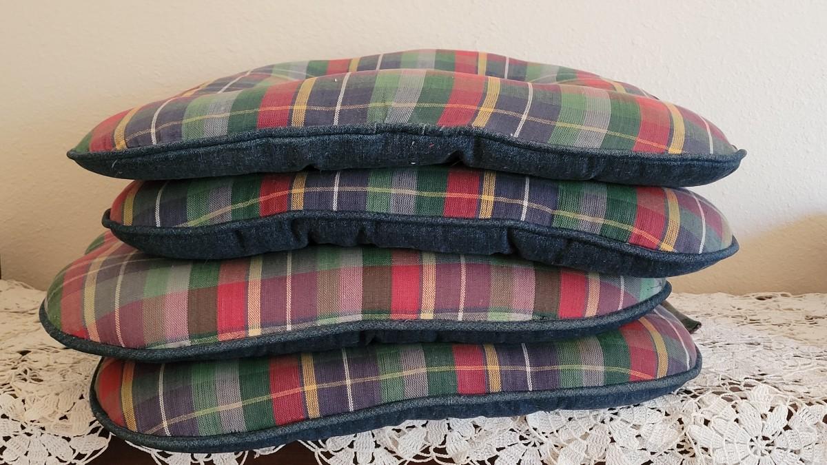 Lot 381: Vintage Plaid & Denim Seat Cushions  (2 are slightly faded)