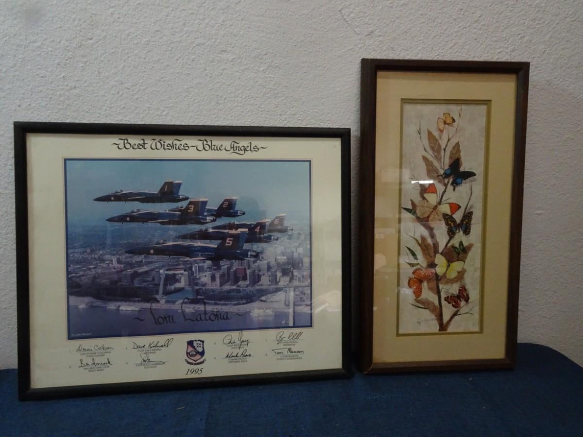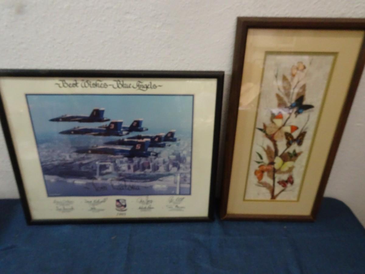 LOT 181. BLUE ANGEL PICTURE AND FLOWER WALL ART