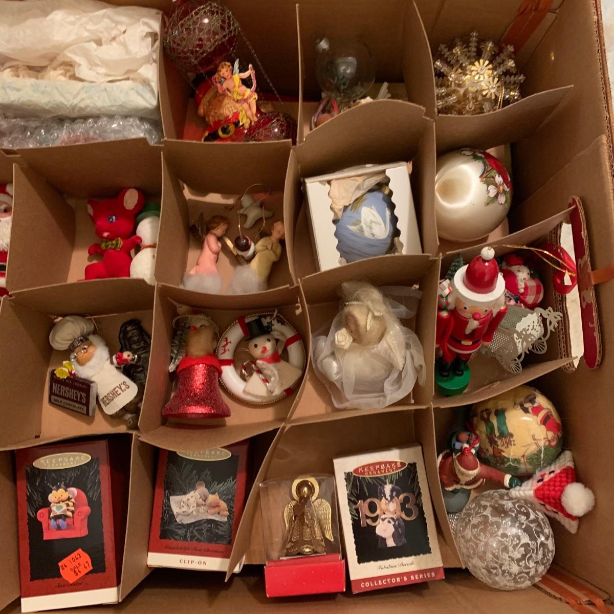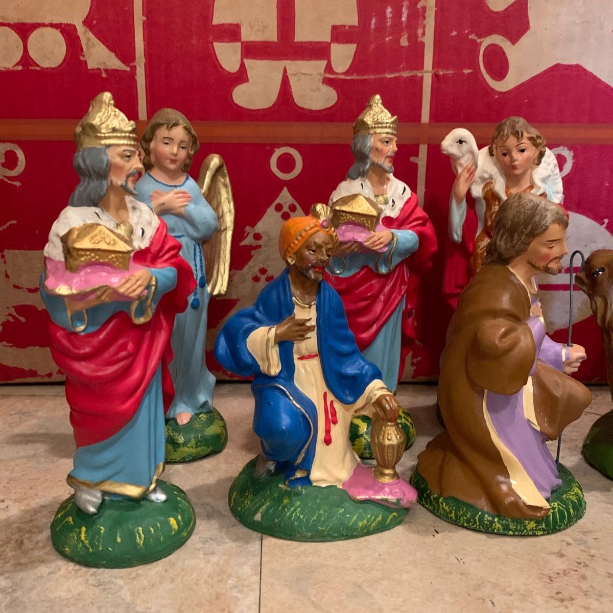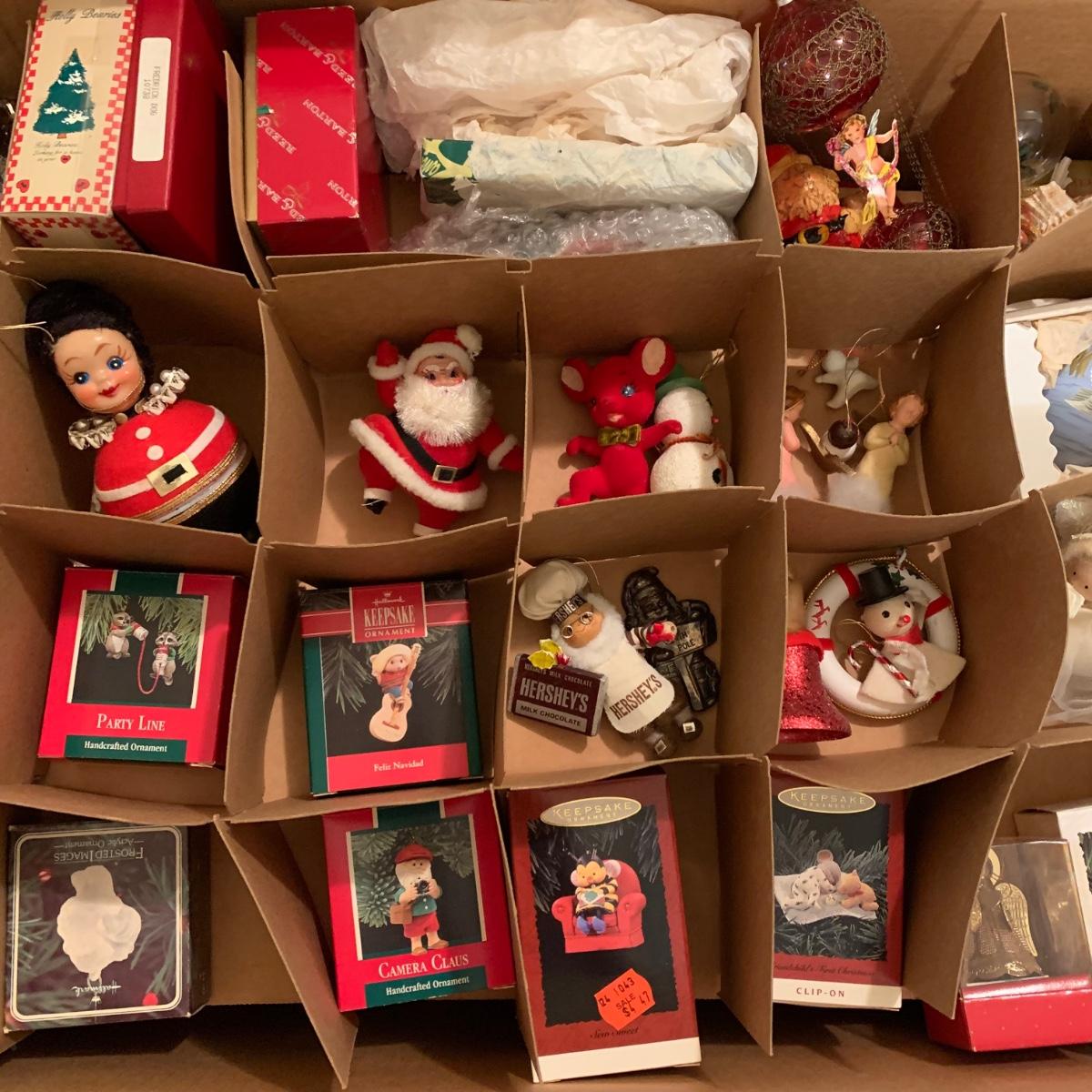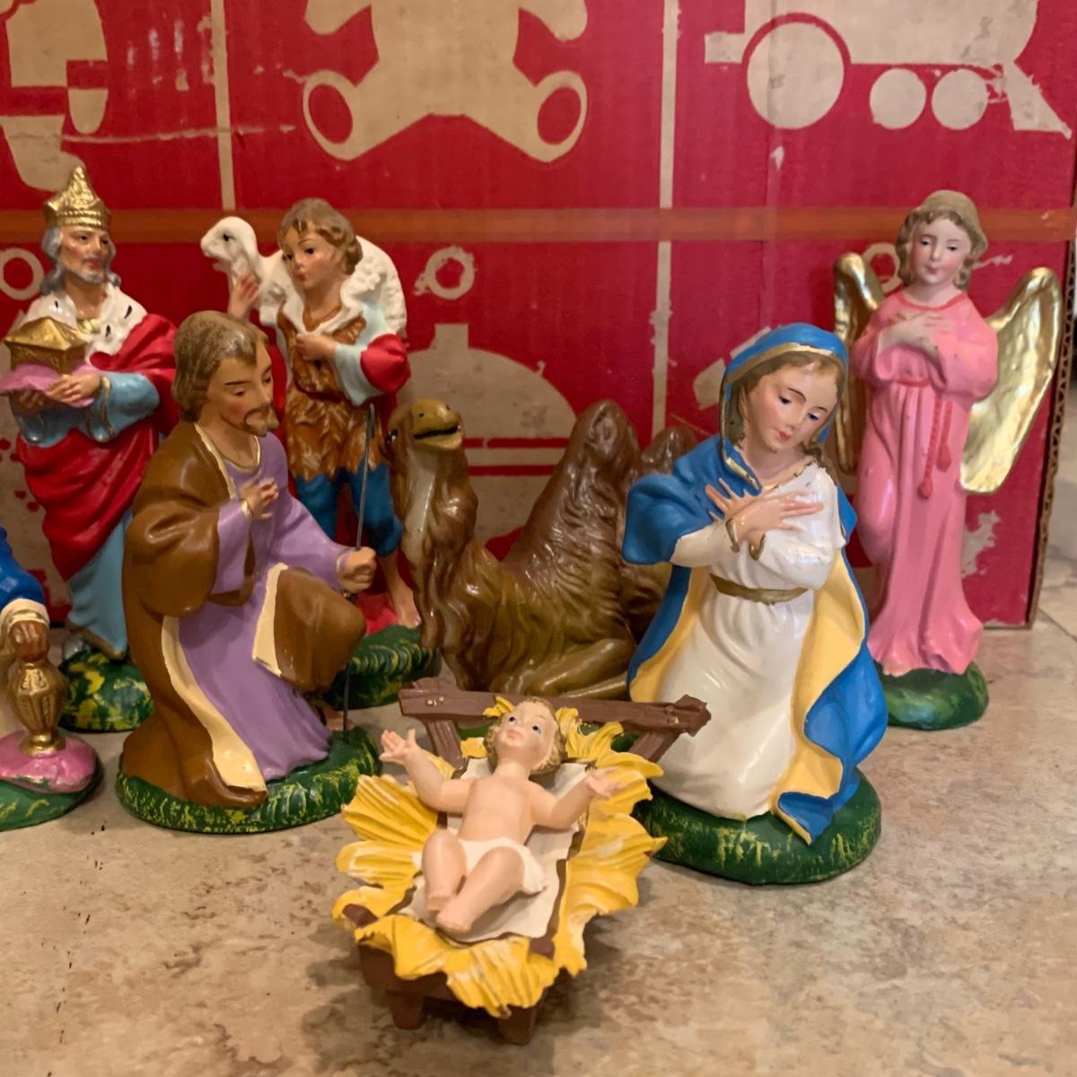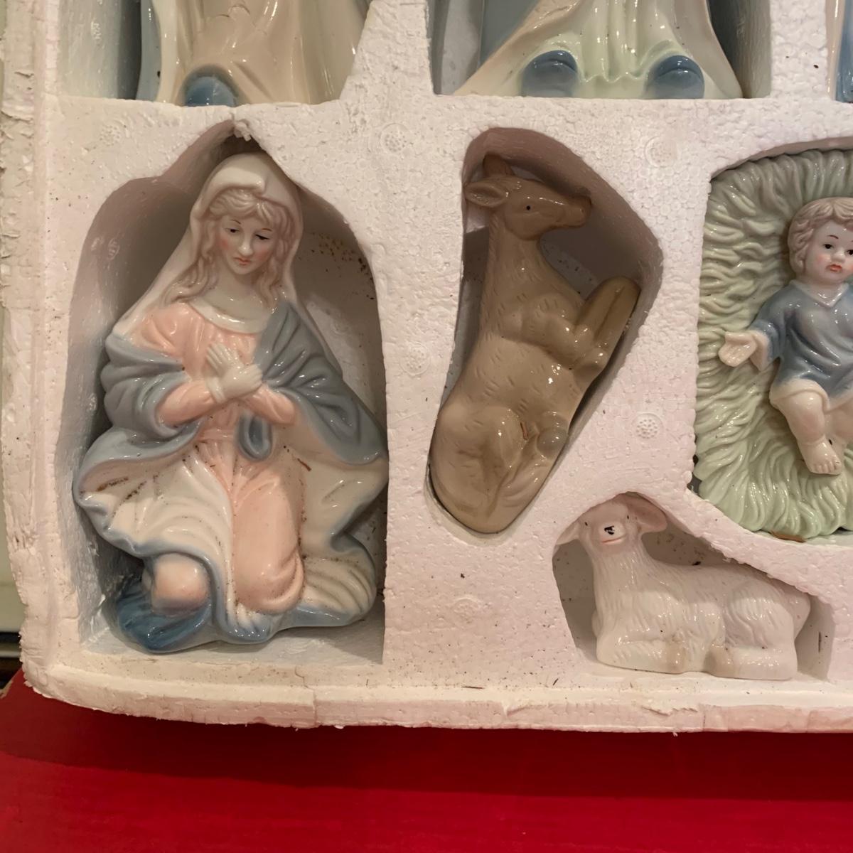 Lot 381: Vintage Christmas Collection: Hallmark, Annalee, Tree Skirt, Ceramic Santa, Santa Tray, New & Old Nativities and so much more