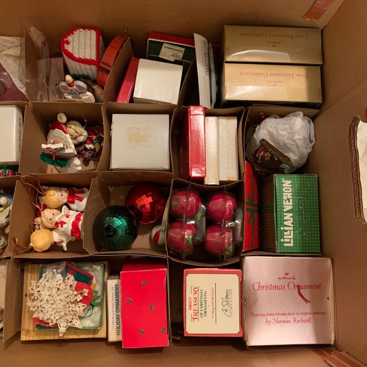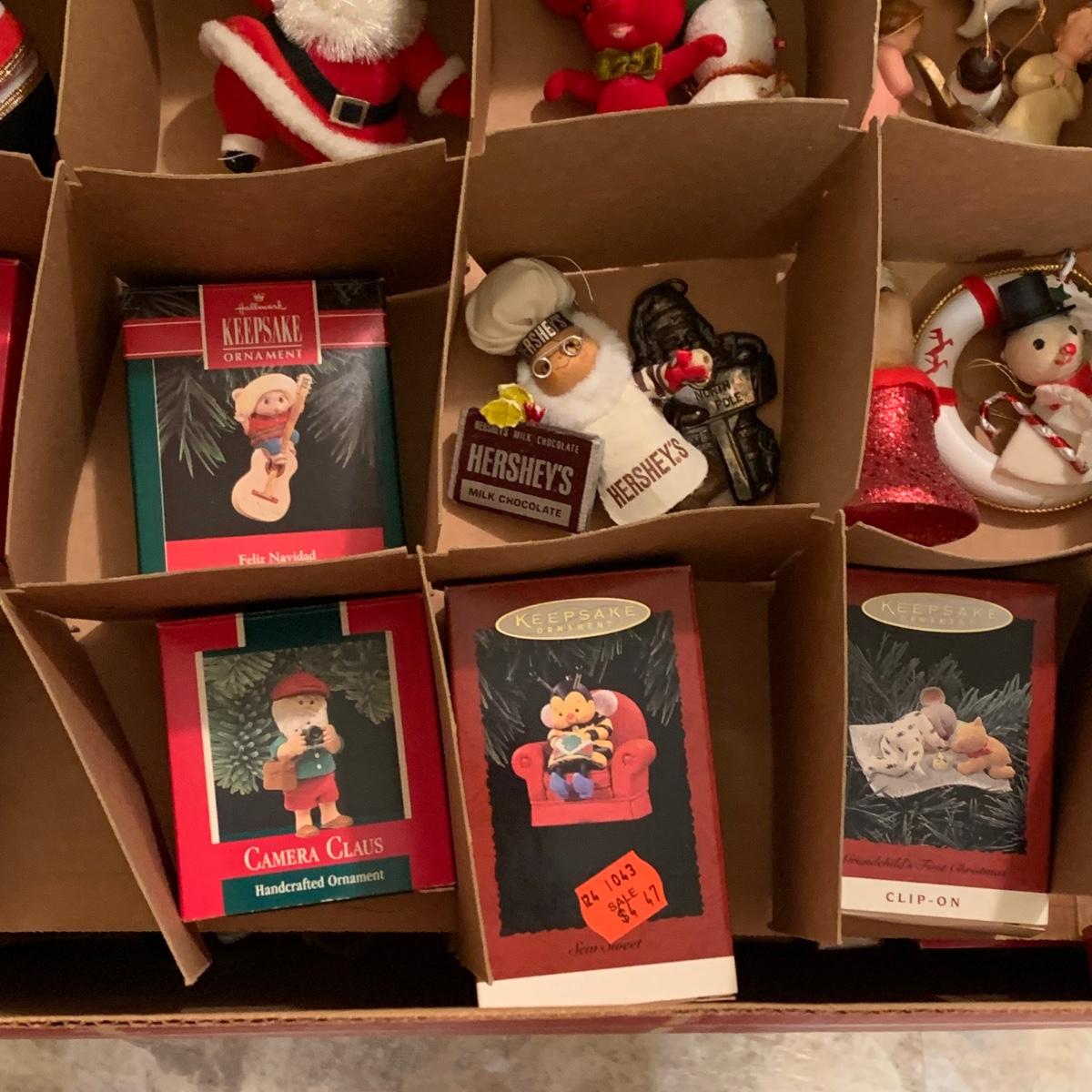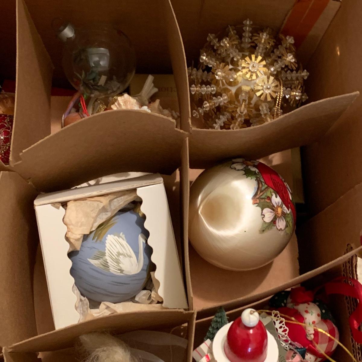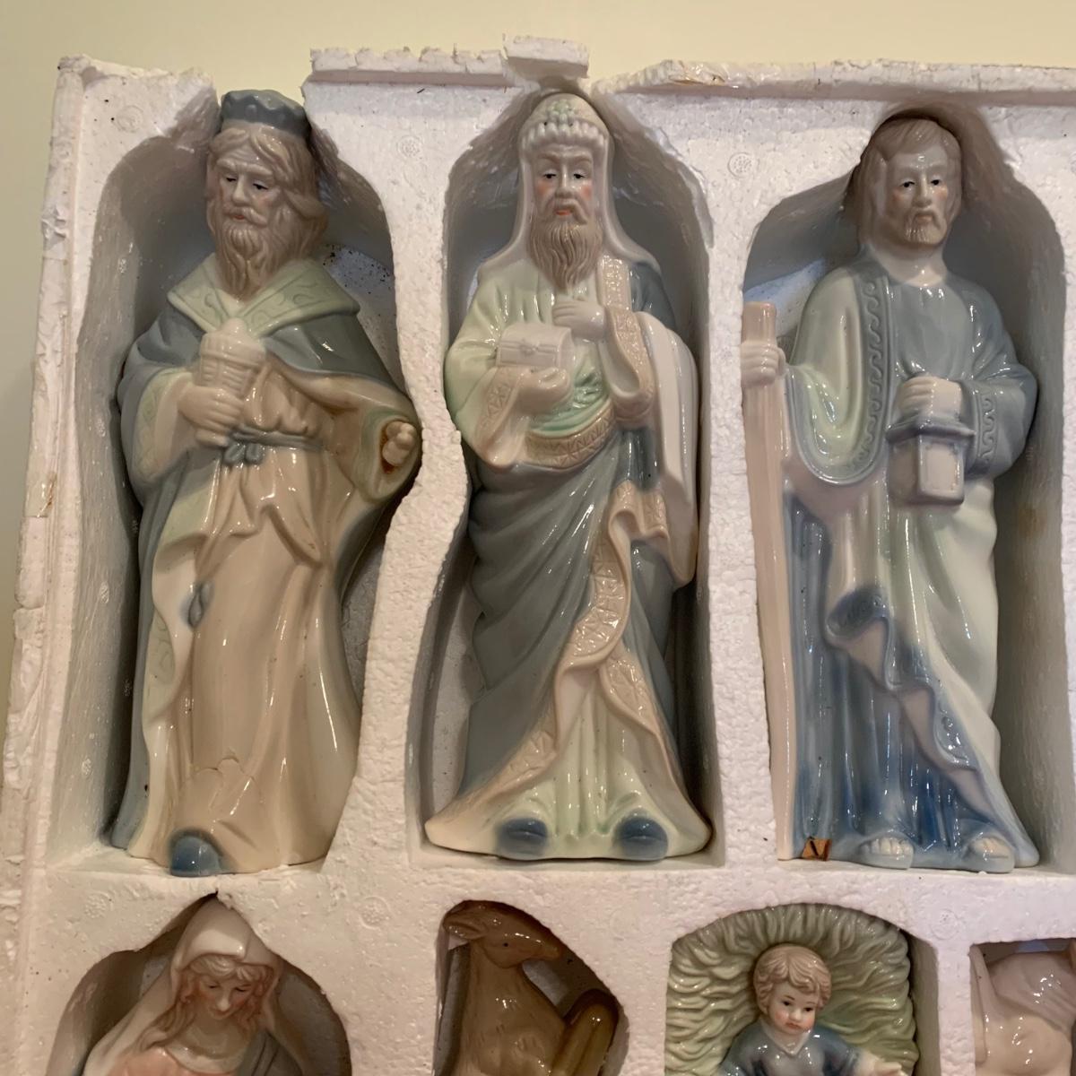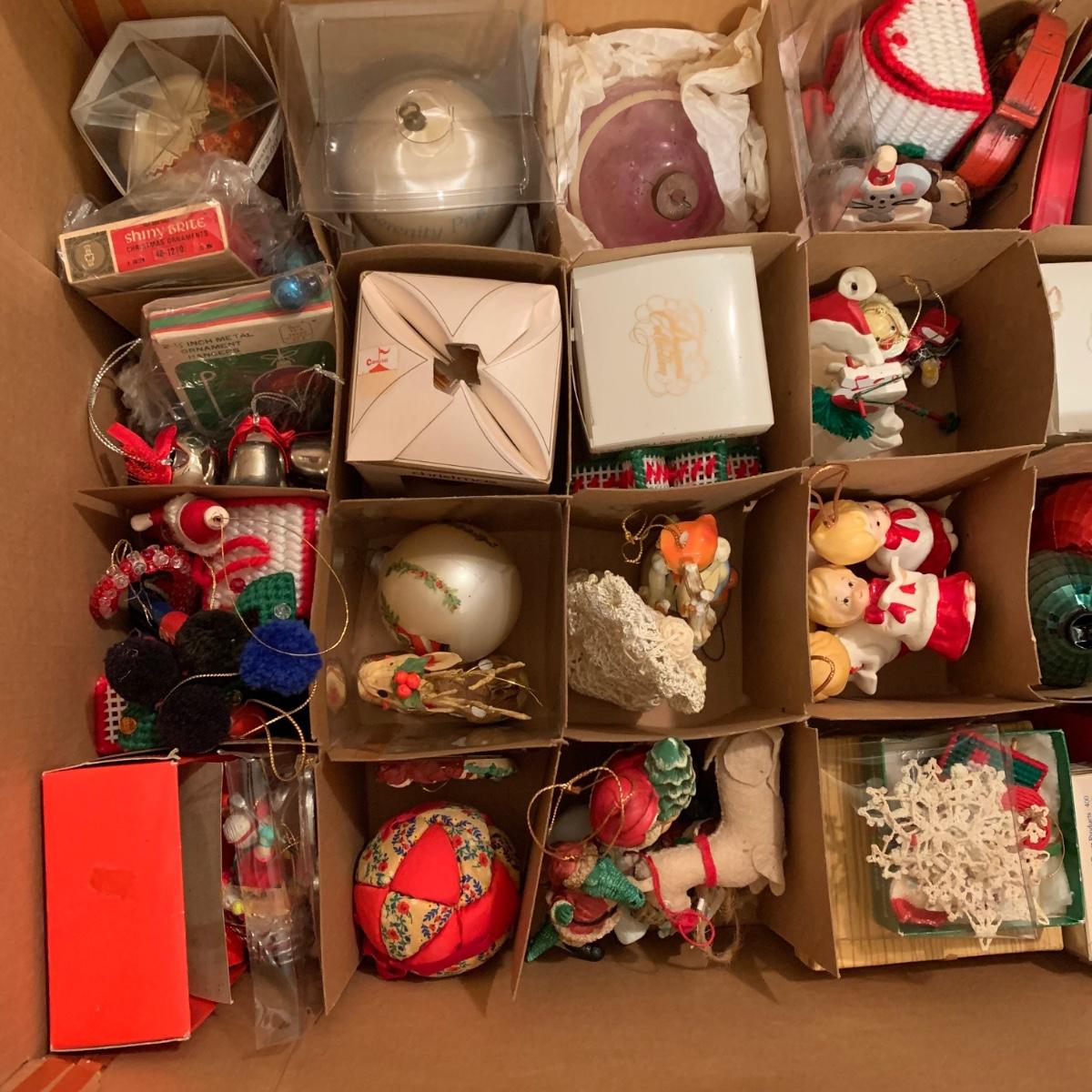 Lot 381: Vintage Christmas Collection: Hallmark, Annalee, Tree Skirt, Ceramic Santa, Santa Tray, New & Old Nativities and so much more
