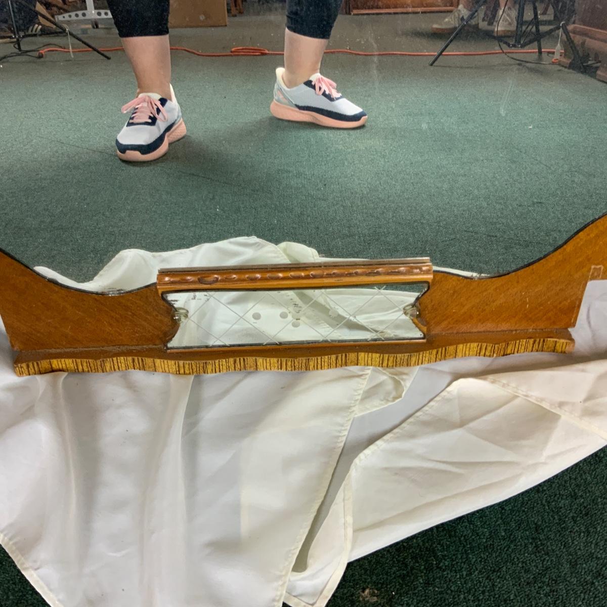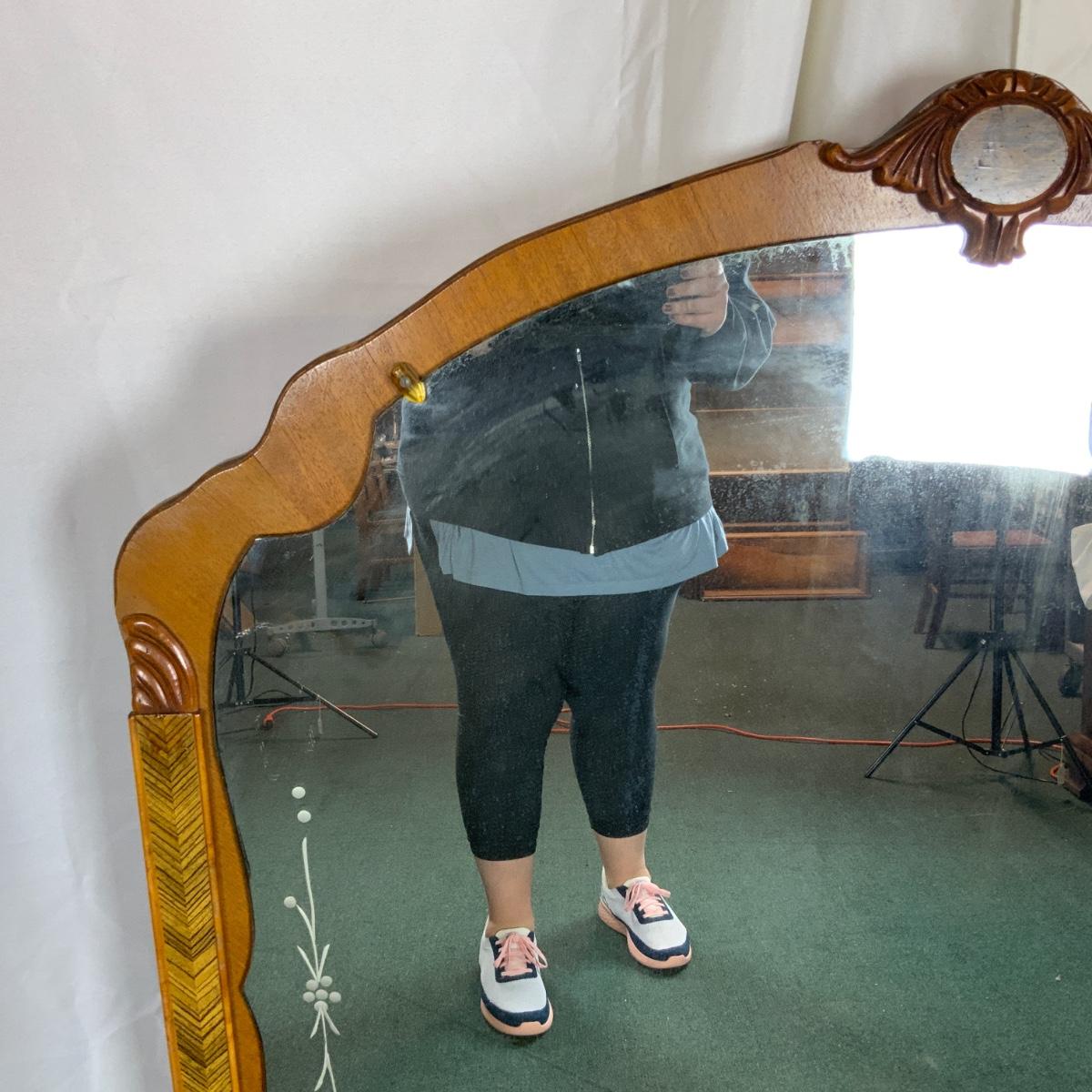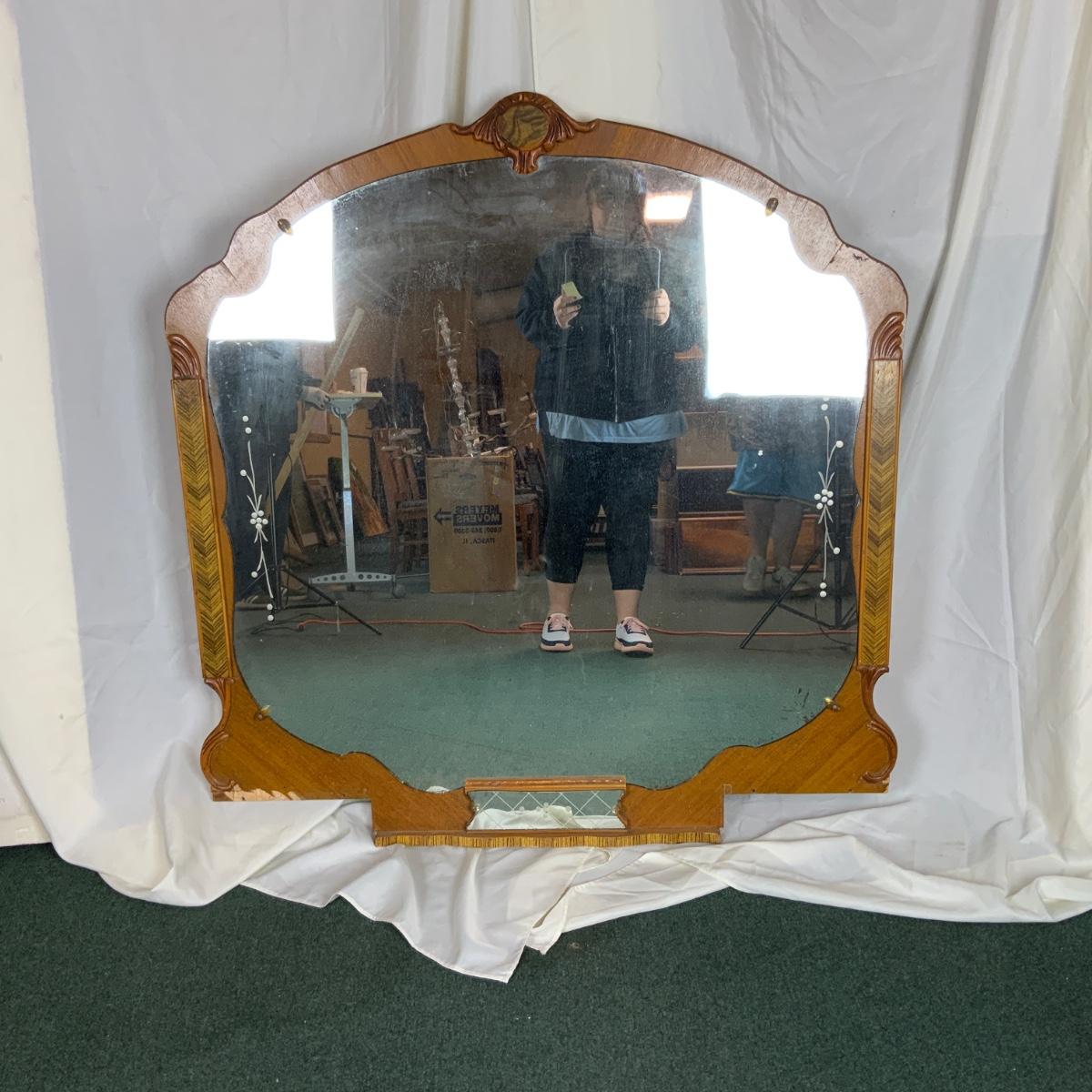 Squarish Vintage Vanity Mirror. Nice floral etching on either side. //::\\ Please see photos for details and condition. No attempt has been made to hide any imperfections. All items listed in this auction are warehouse items, and need to be cleaned. A majority of the items need restoration as well. All items are sold AS IS and WITHOUT GUARANTEE. If you are uncertain about an item, DO NOT BID. Due to the nature of this online auction in-person inspection is HIGHLY recommended. All Sales are FINAL. Pick Up Times are FIRM. Please confirm with your own schedule that you can pick up in the scheduled times listed in the Terms and Conditions. Any questions please message the auctioneer. DO NOT Contact The Harp Gallery.
