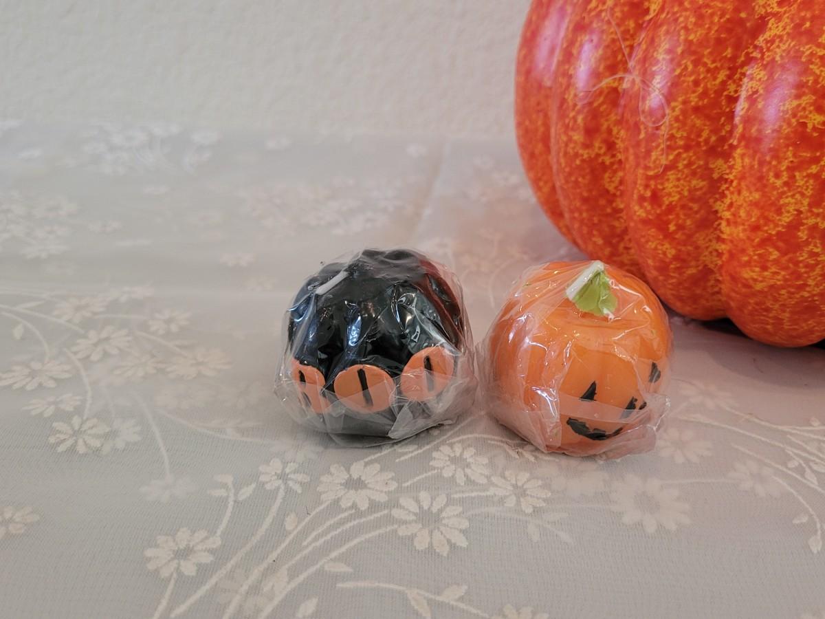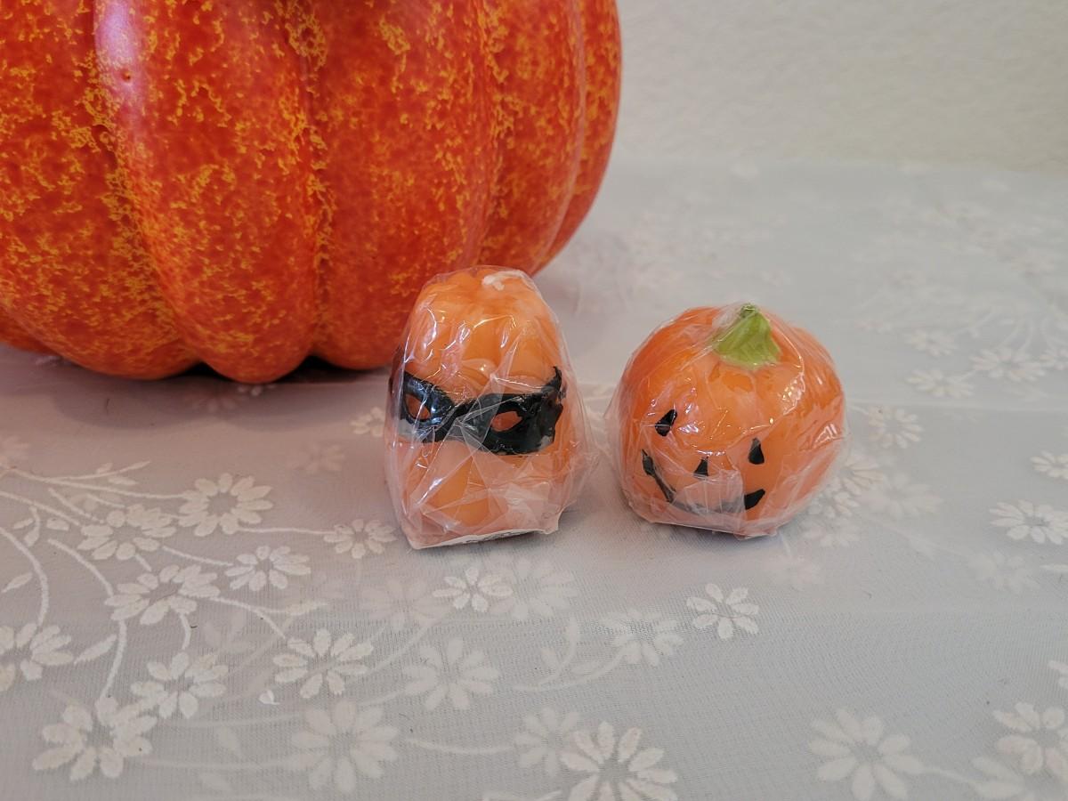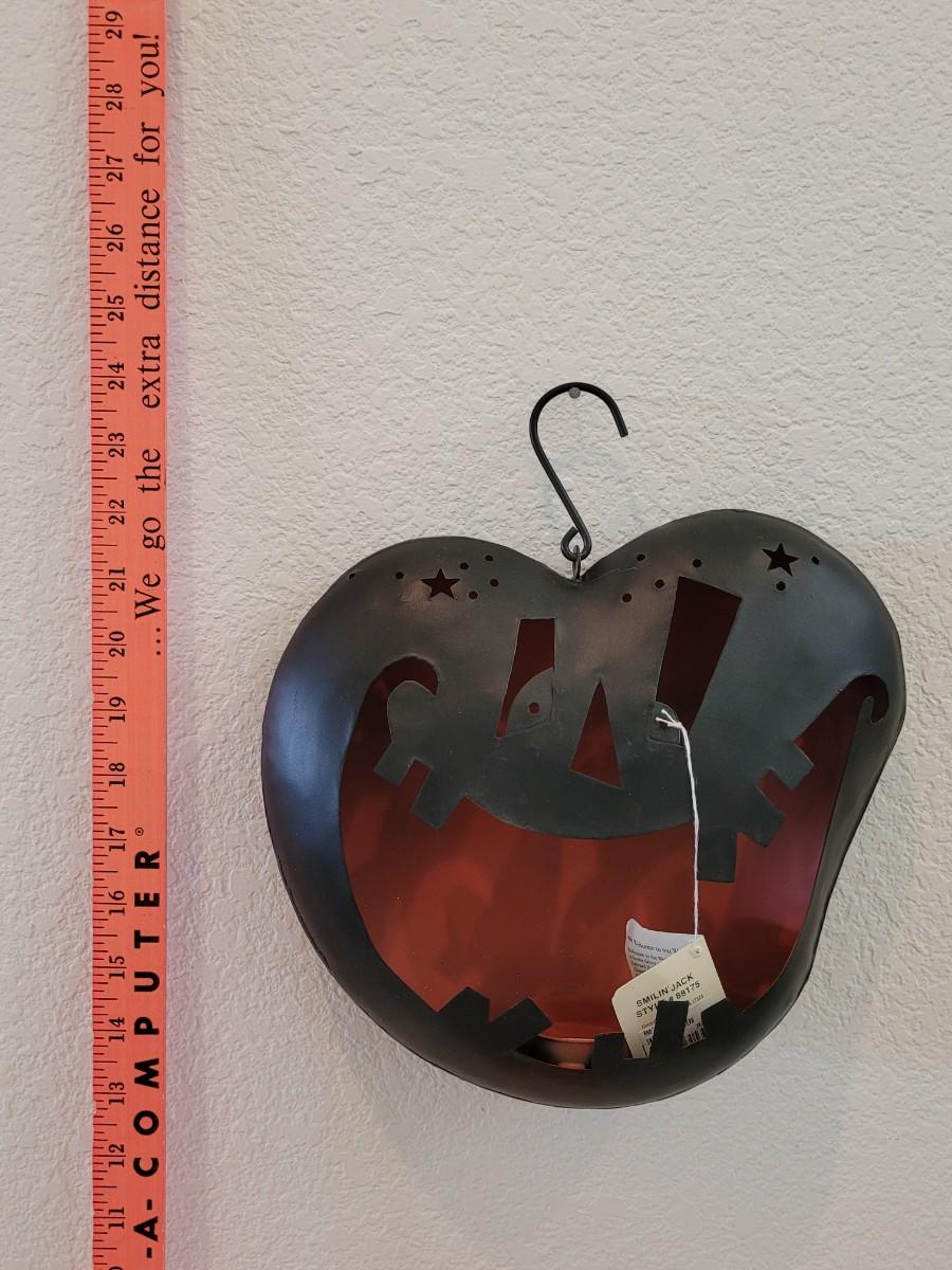 Lot 382: Metal Hanging Luminary Pumpkin, Small Candles and Foam Pumpkin Deco