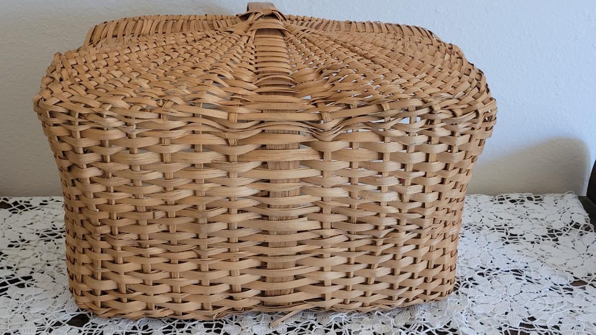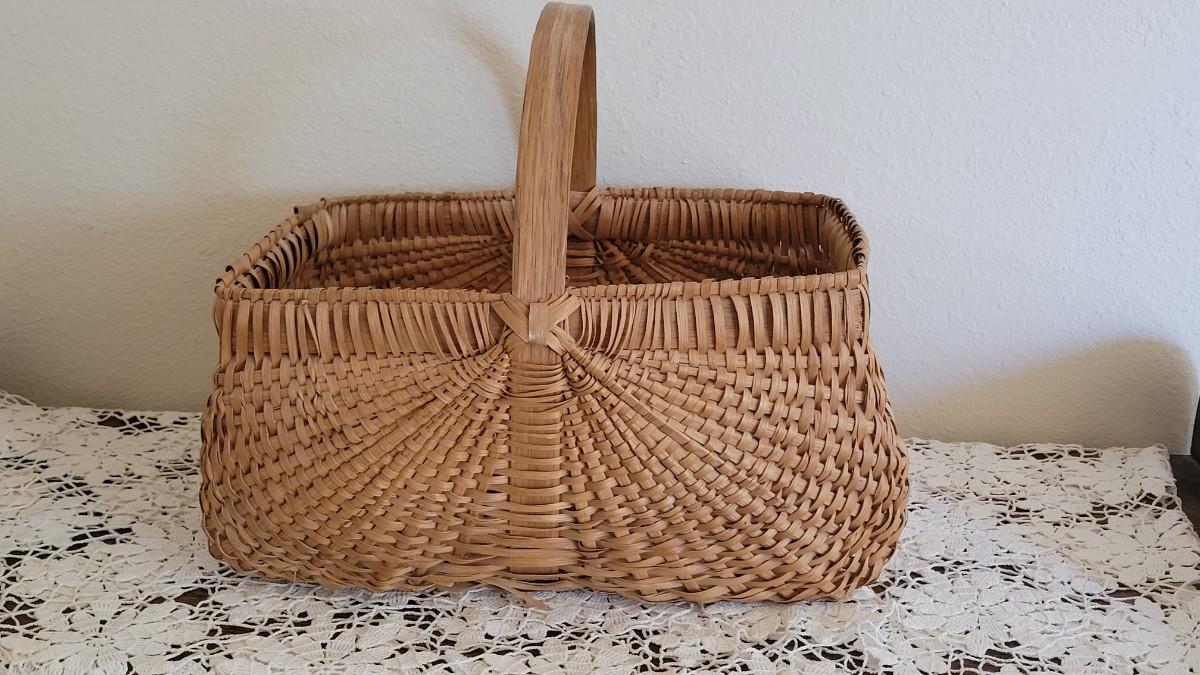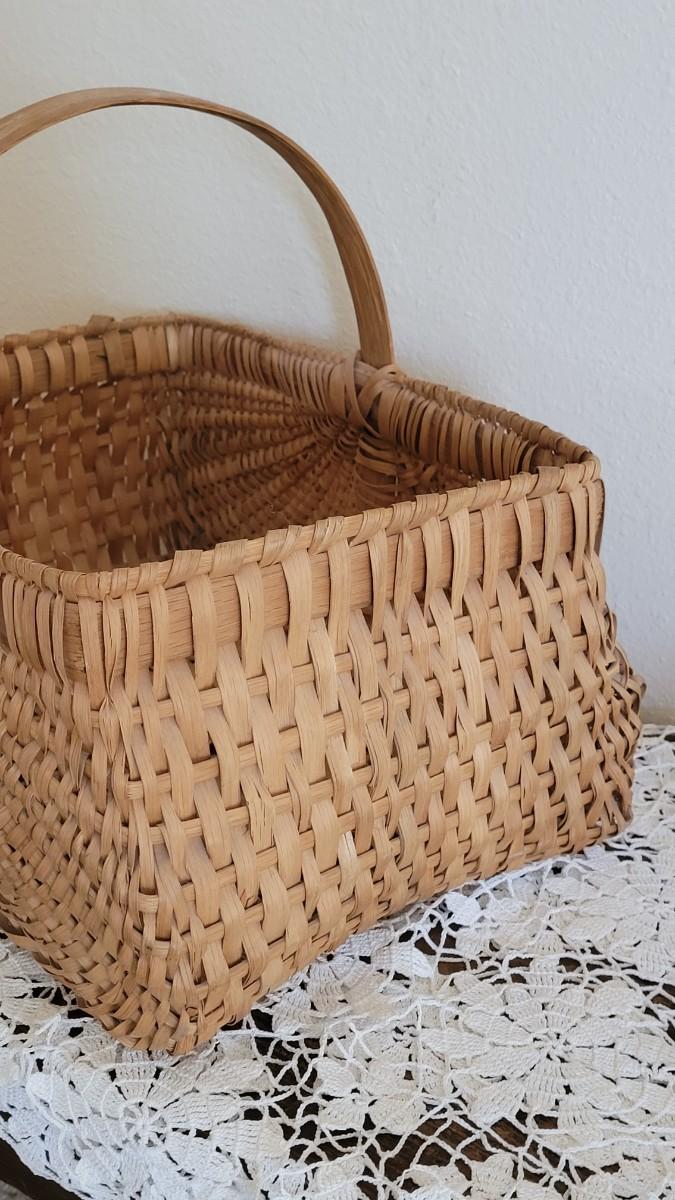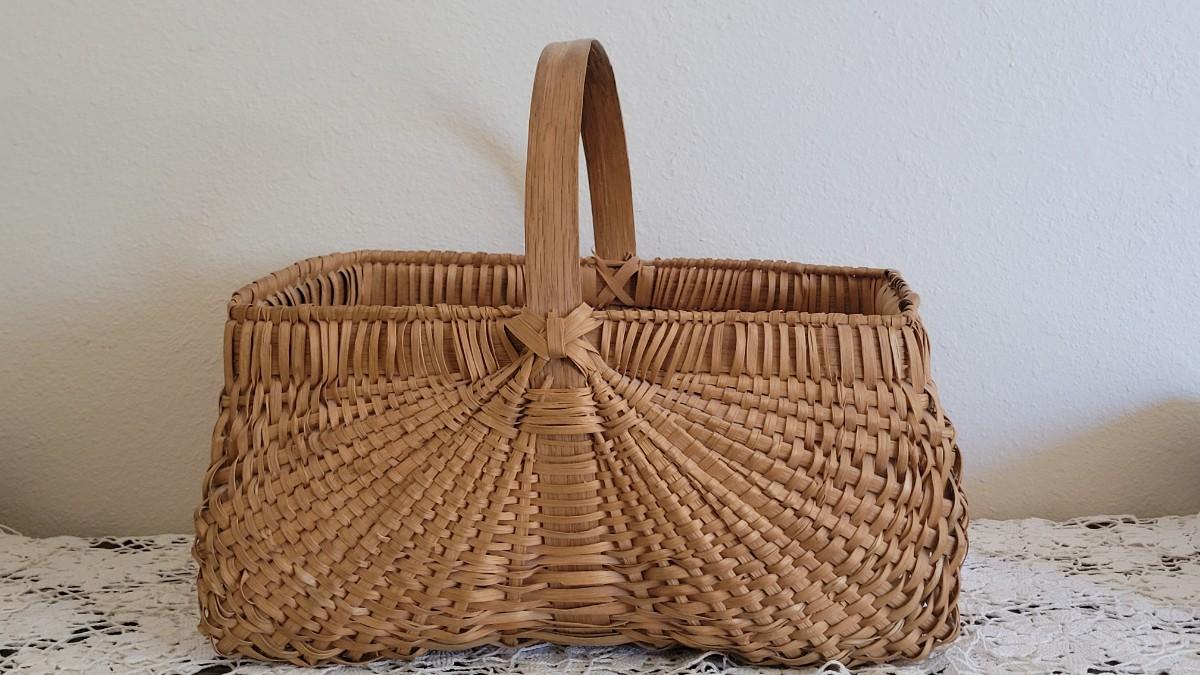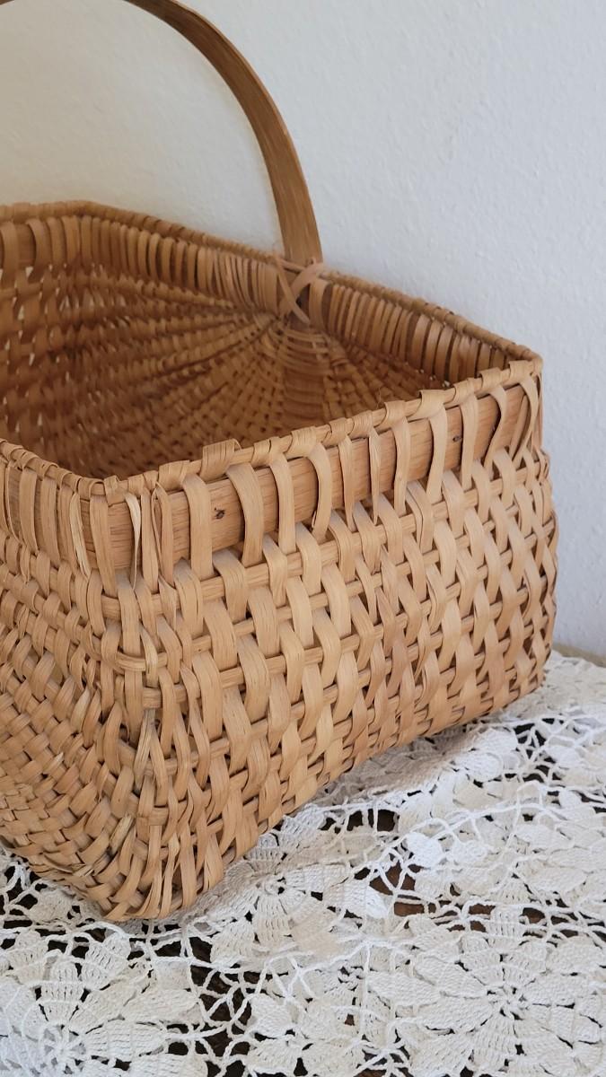 Lot 382: Vintage Wood Handle Woven Gathering Basket