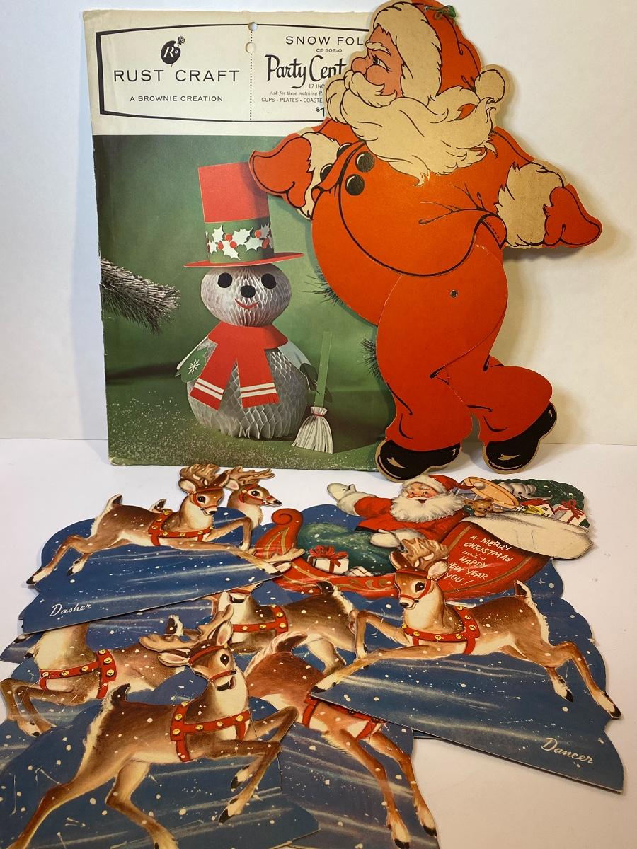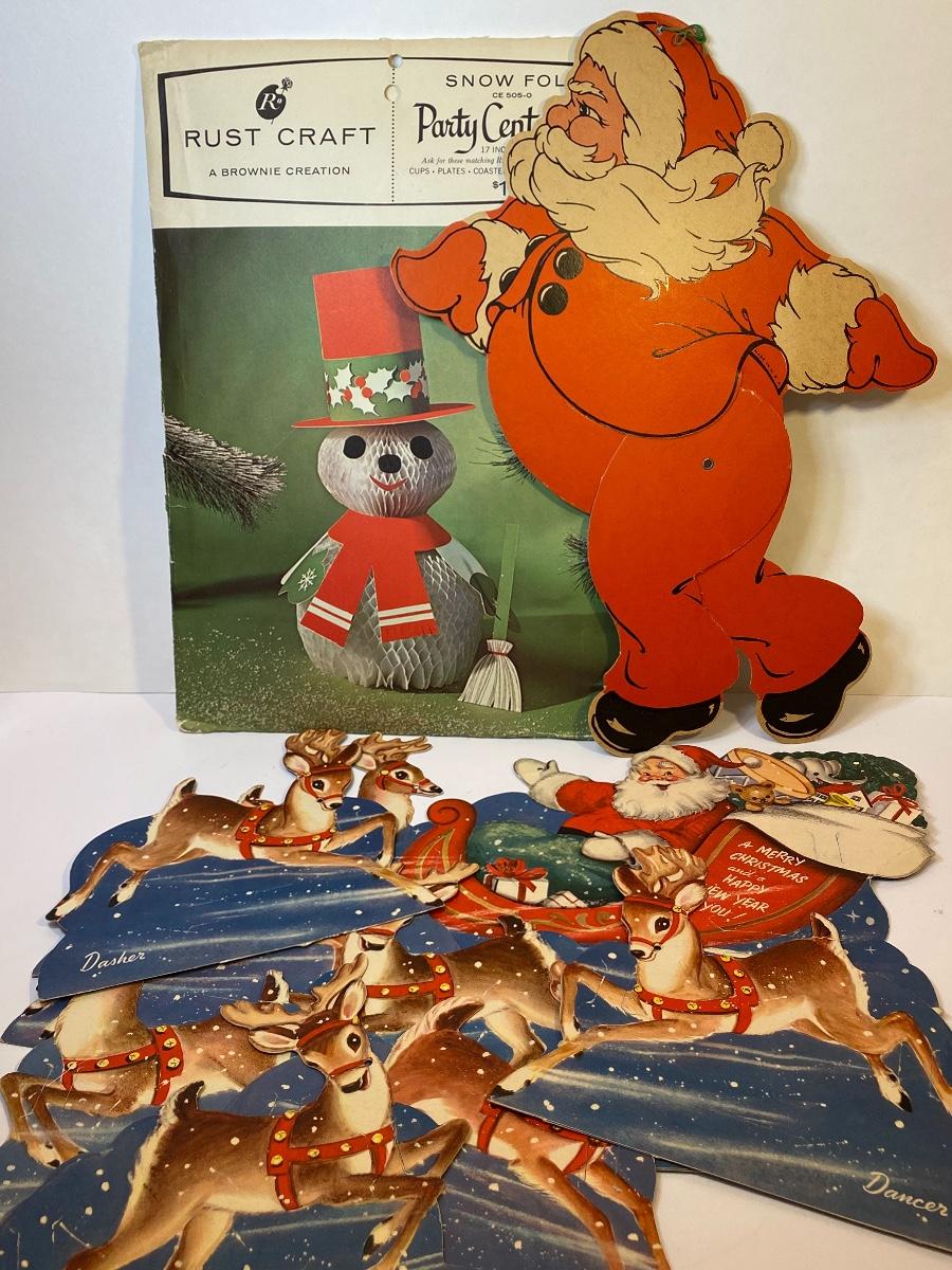 Lot 382: Vintage Christmas: New Snowman Centerpiece & Cardboard Cut-Outs