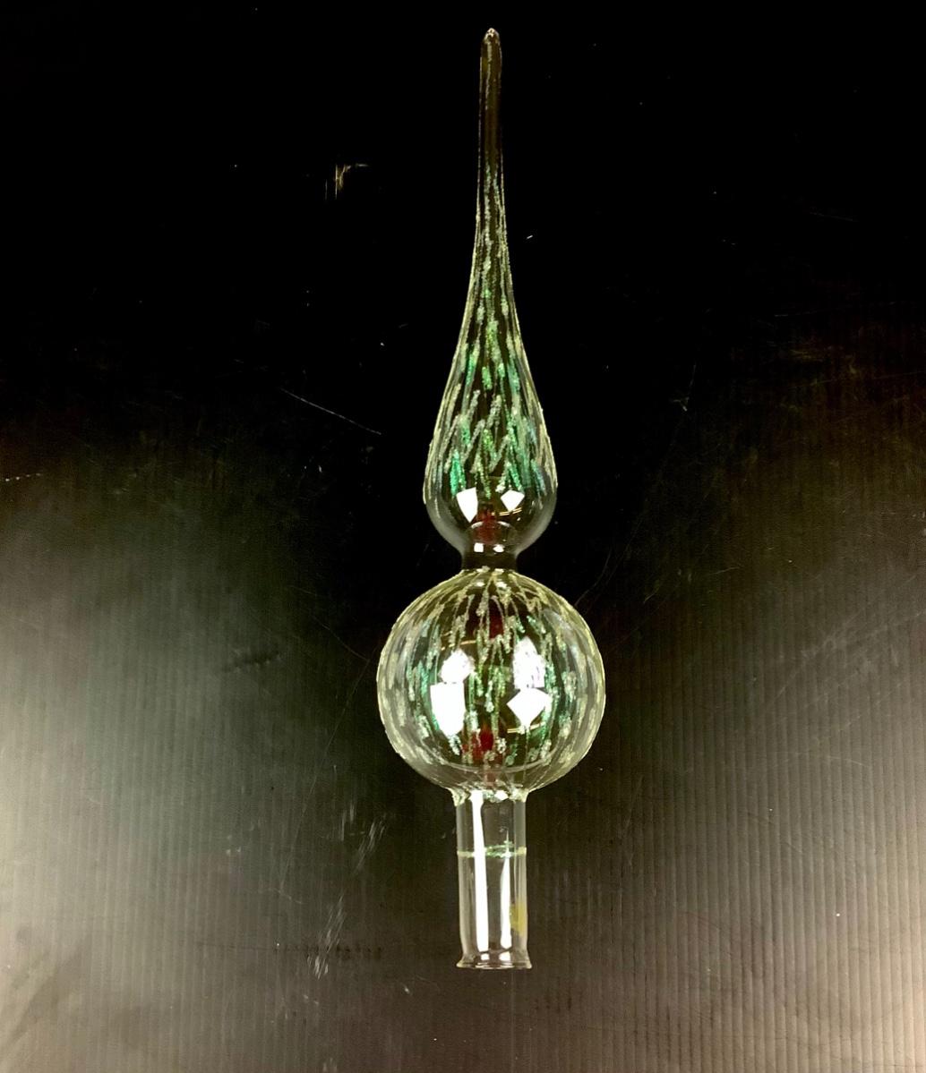 Clear Glass Tree-topper with Shades of Green Glitter -