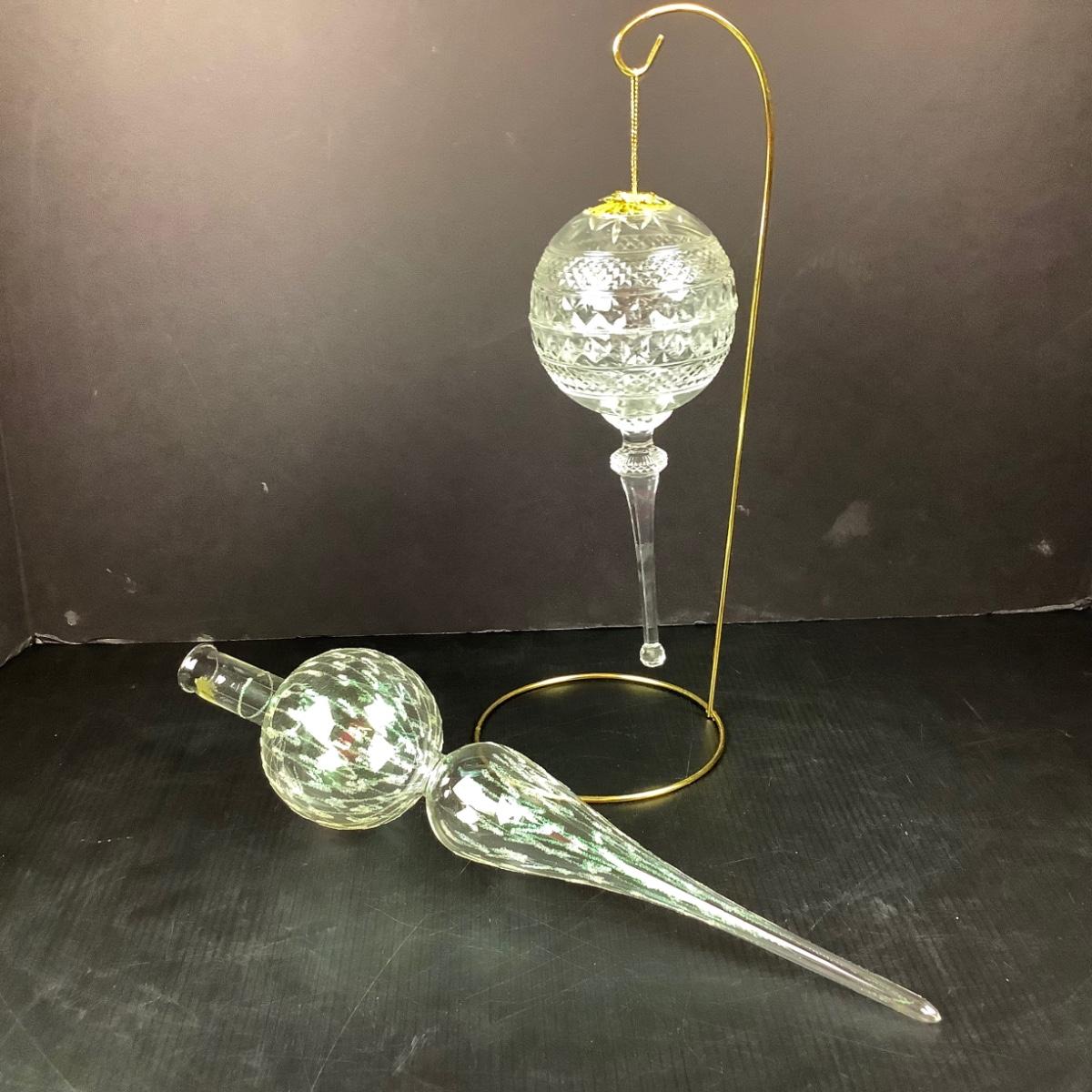 Lot 382. Clear Glass Tree-topper with Shades of Green Glitter & Hanging Ornament