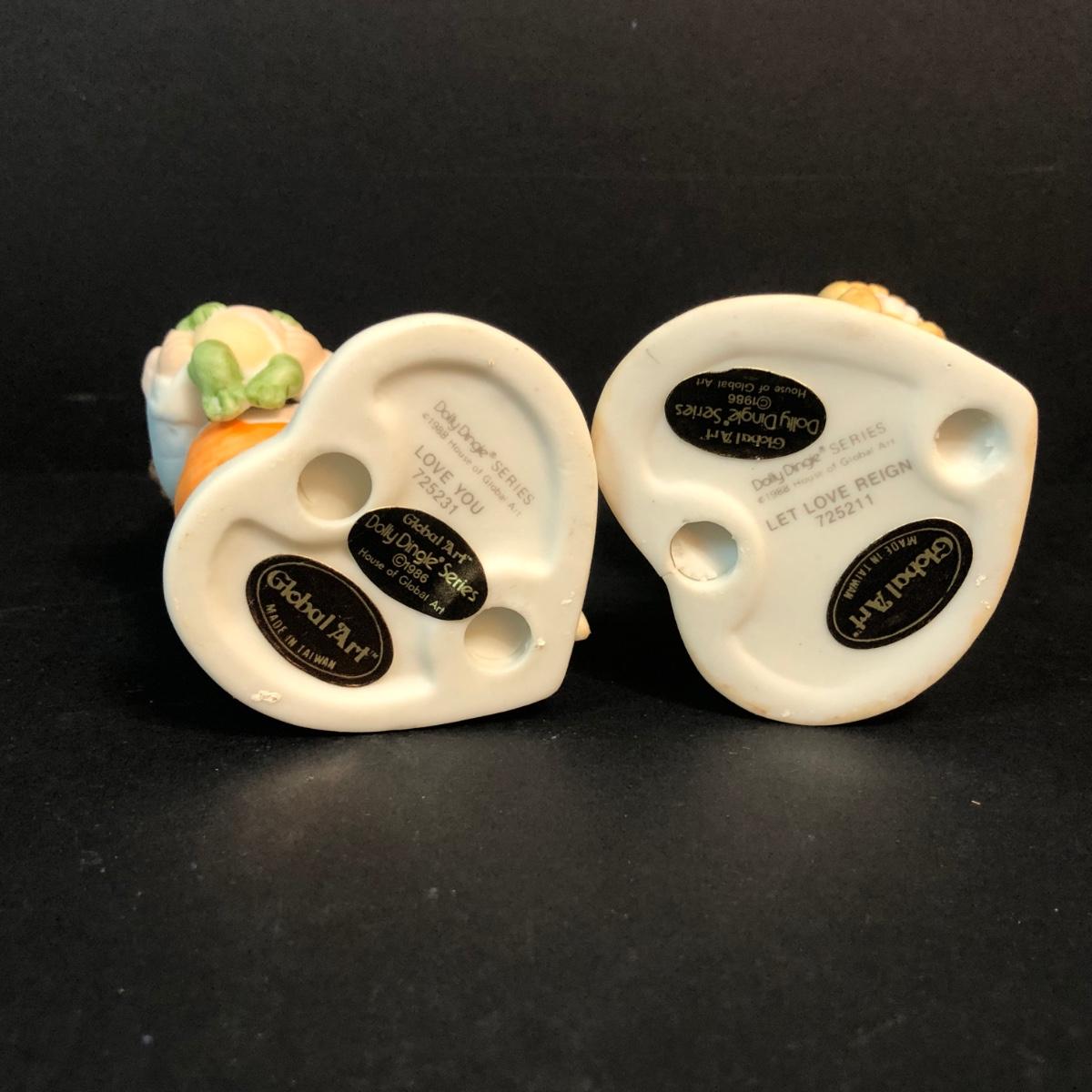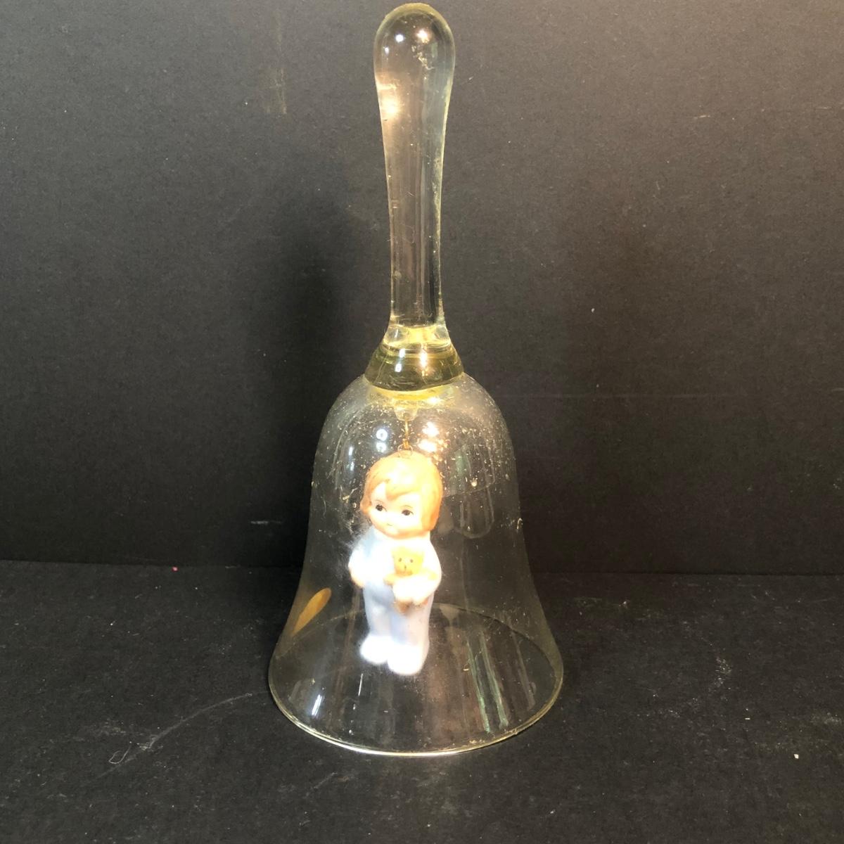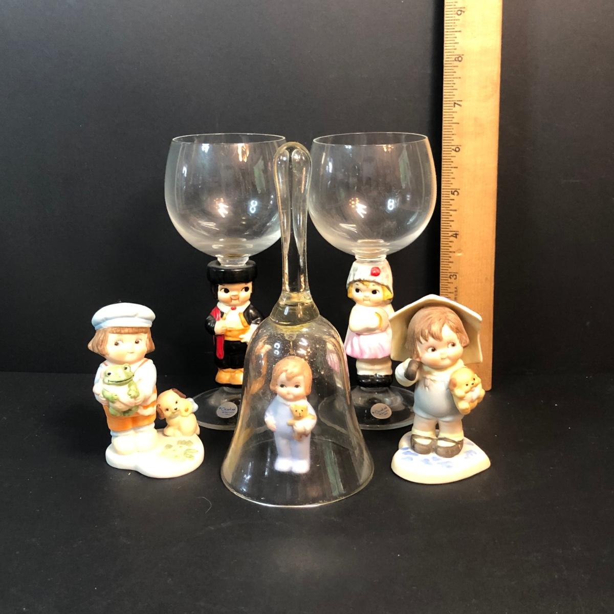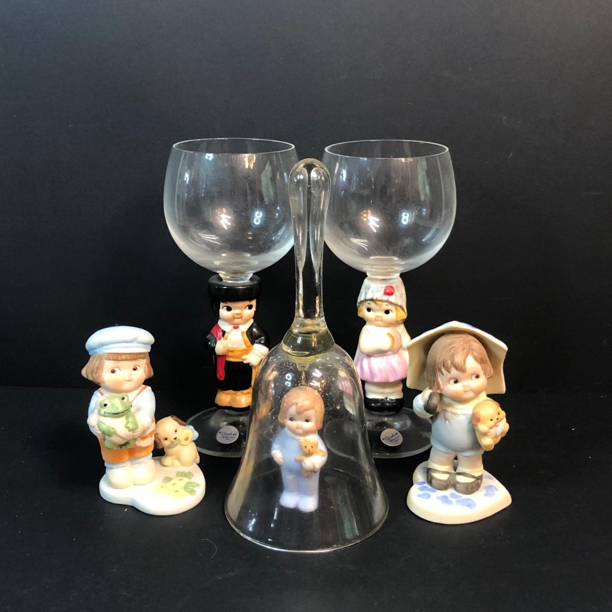 LOT 382M: Dolly Dingle Collection - Goebel Glasses, 1986 Global Art "Love You" & "Let Love Rein" Figures, Global Art Glass Bell