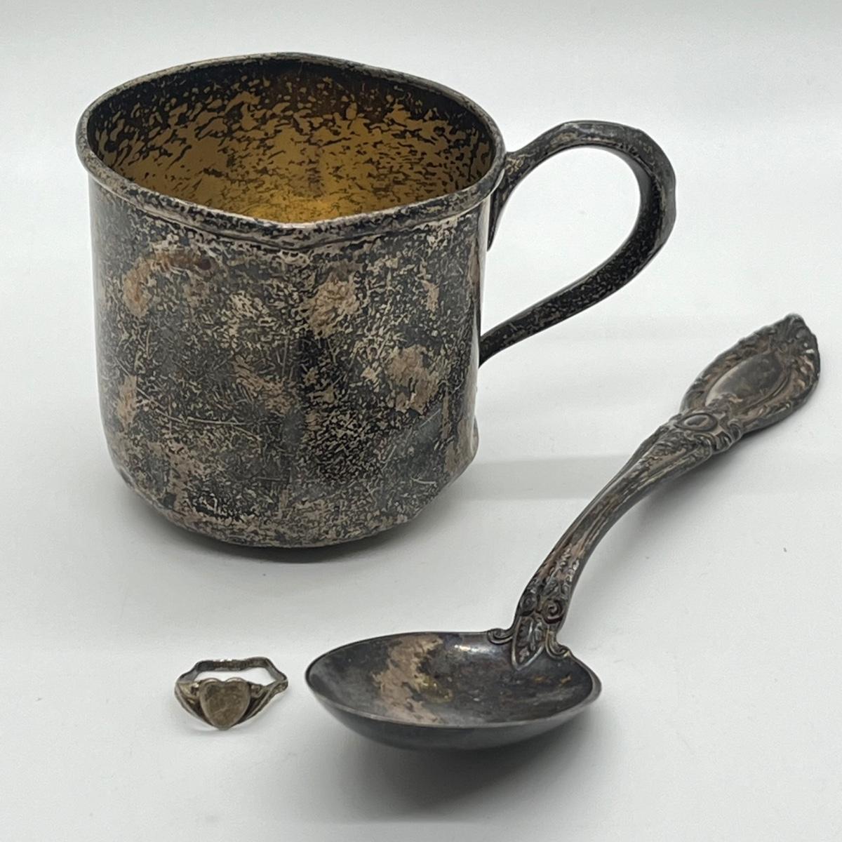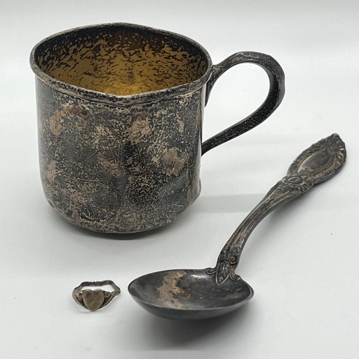 LOT 383J: Sterling Silver Ring, RLB 575 Cup, Towle Sterling Spoon - 89.38 grams