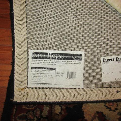 BURGUNDY FLORAL RUG RUNNER MEASURES 92" X 28" IT IS A QUALITY 100% WOOL RUG BY INDIA HOUSE COLLECTIONS. INCLUDES A NO SKID PAD.