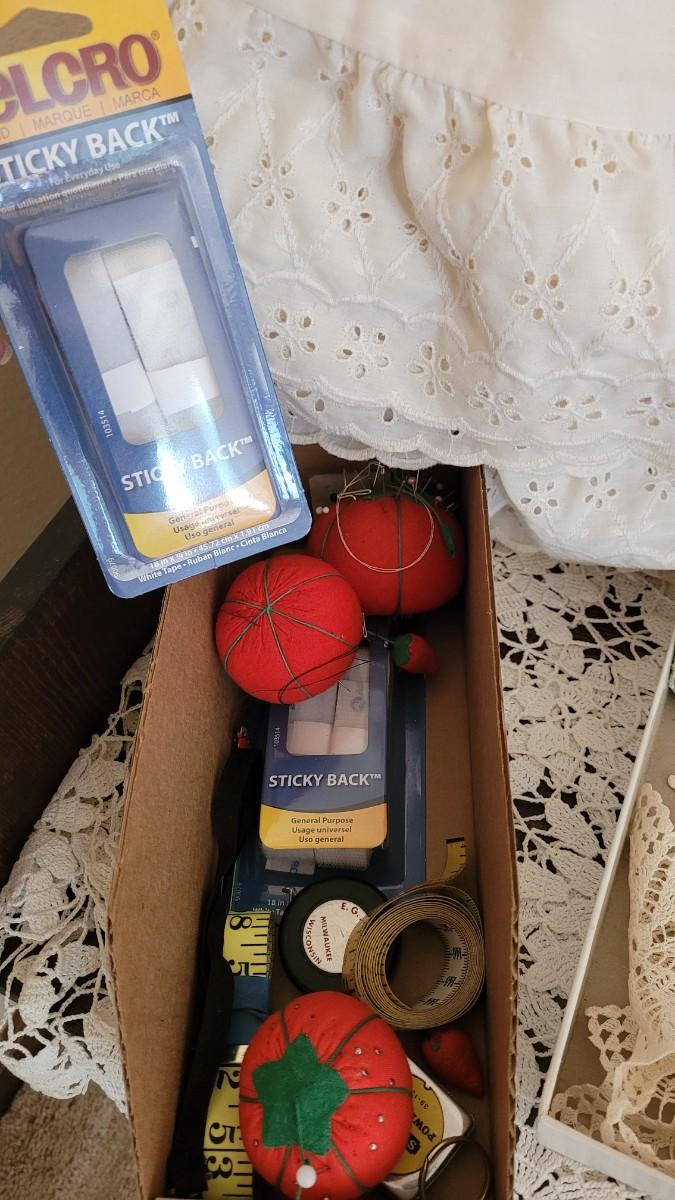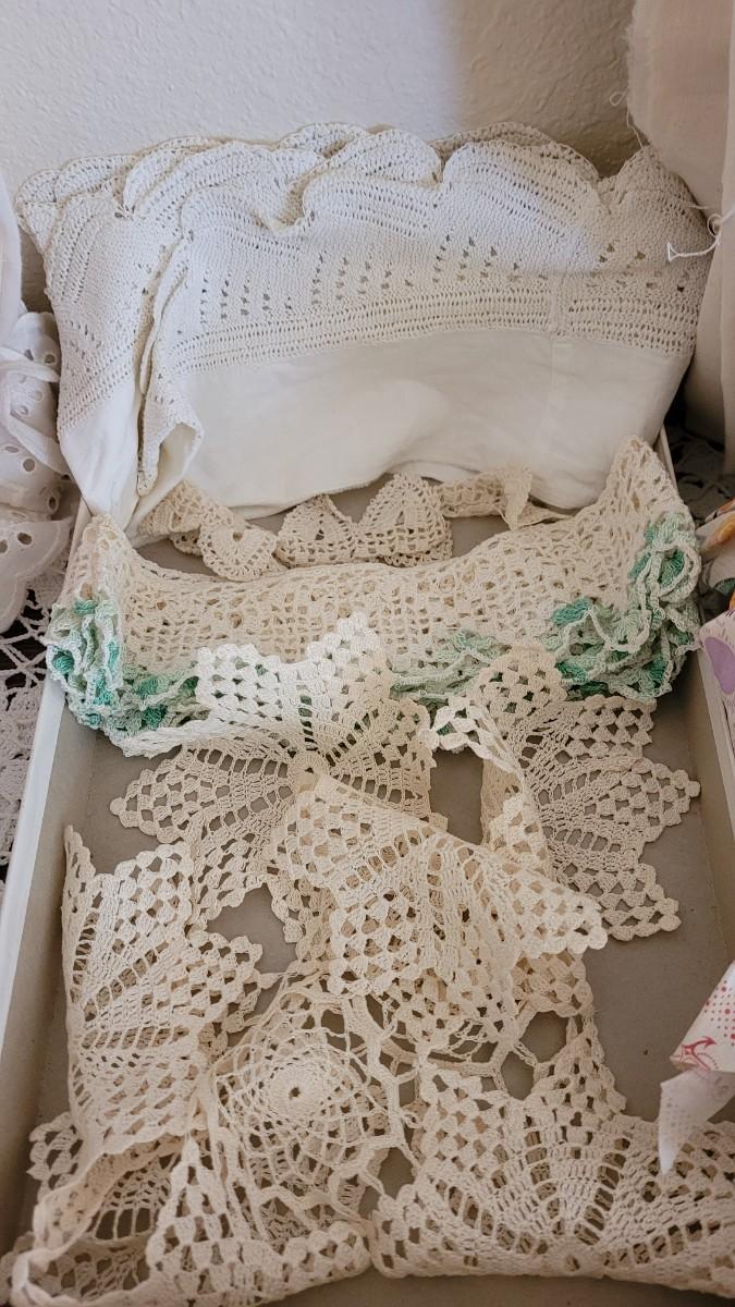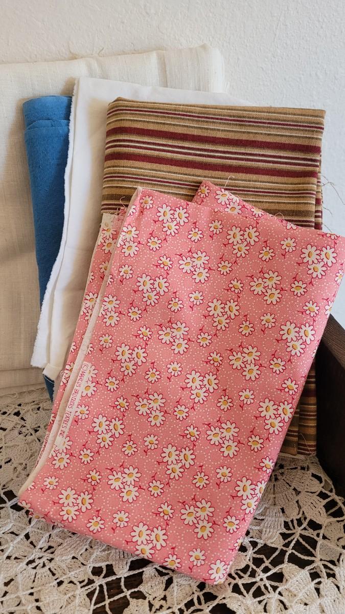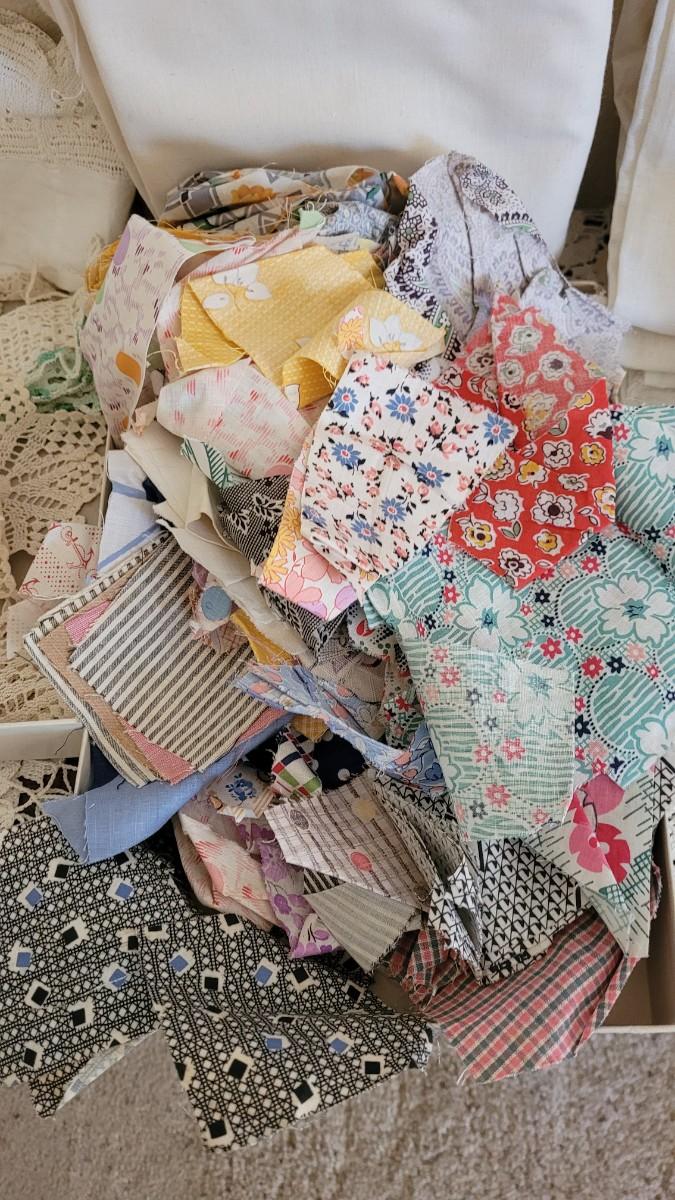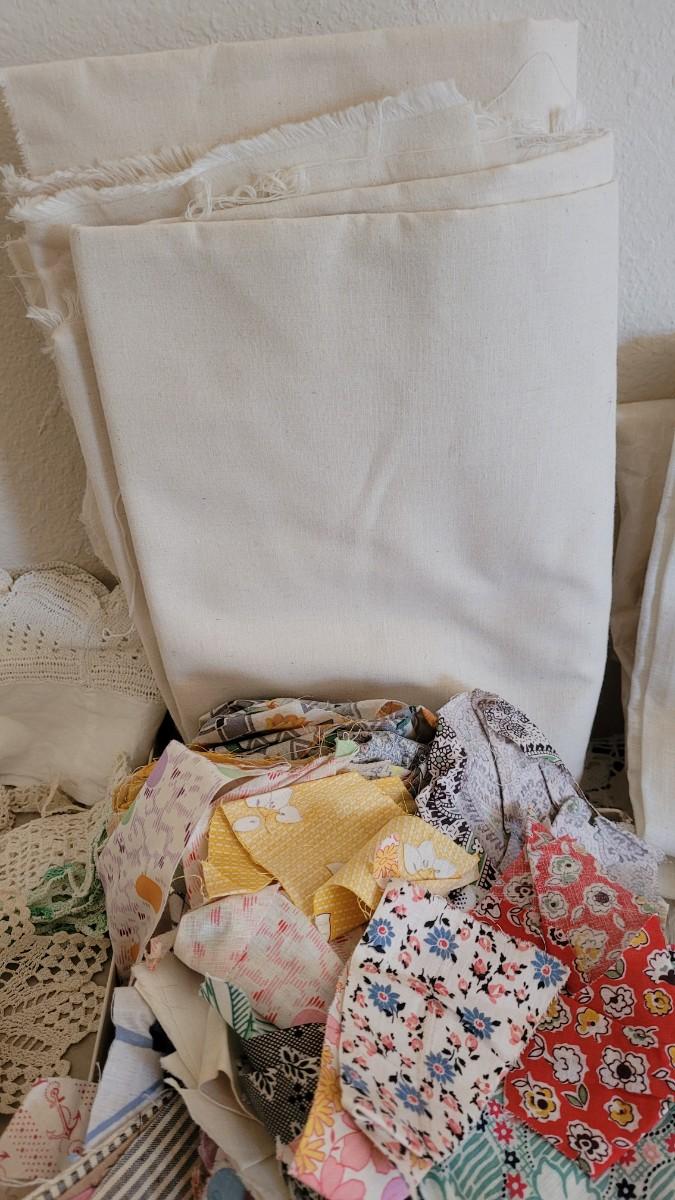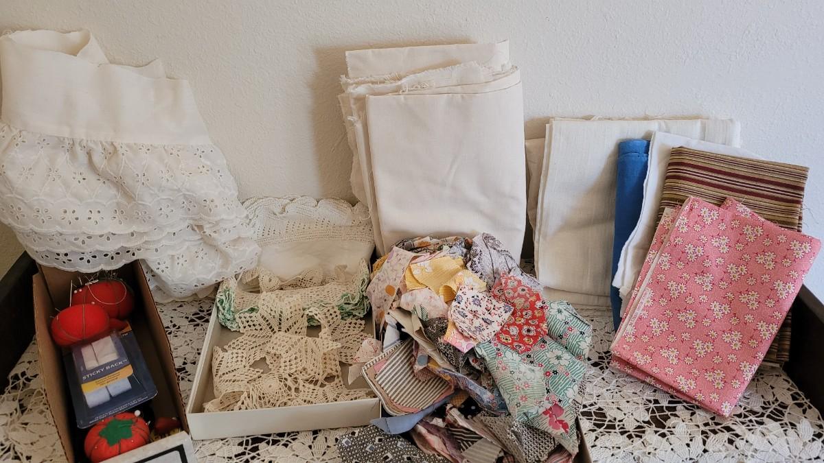 Lot 383: Fabric including Vintage Quilting Squares, Handmade Trim, Sewing Essentials