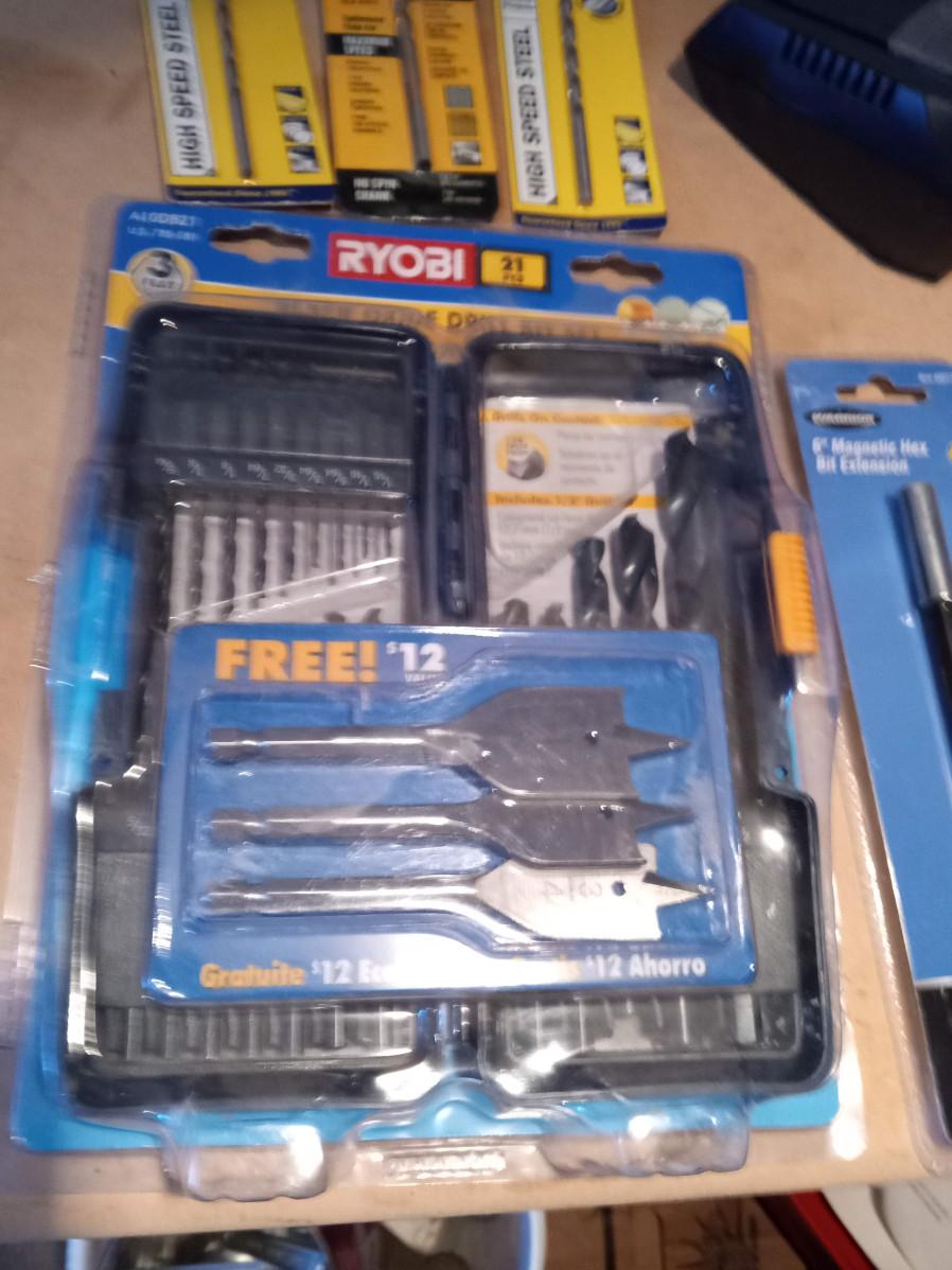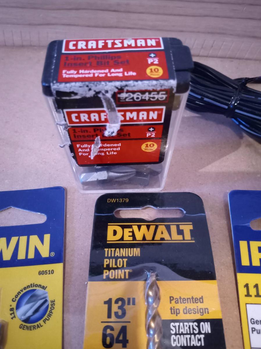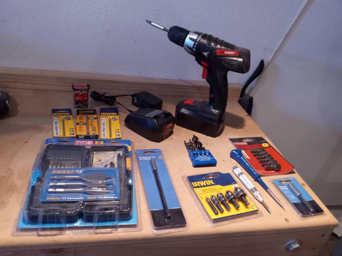 DRILL MASTER CORDLESS DRILL AND A GREAT VARIETY OF BITS AND ATTACHMENTS