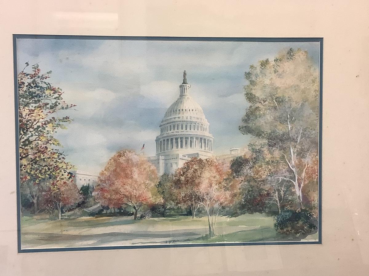 Framed, Original Watercolor Painting by Jean Rainey Smith “. Autumn Capital “