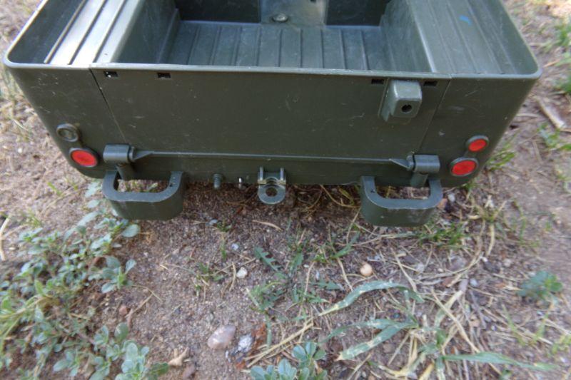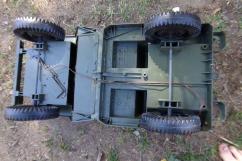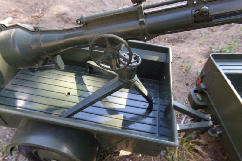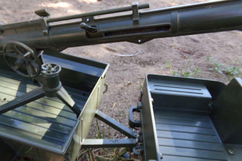 THE BARREL OF THE HORITZER IS ADJUSTABLE AND IT'S SPRING LOADED TO LAUNCH ??. THERE'S A COMPARTMENT UNDER THE JEEP HOOD FOR STORAGE AND FOR 2 D BATTERIES WHICH ALLOWS THE HEADLIGHTS TO WORK WHEN GEAR SHIFT IS PLACED TO THE ON POSITION. I TESTED THIS AND FIGURE THE BULBS MUST NEED REPLACING IN ORDER FOR THE LIGHTS TO WORK.