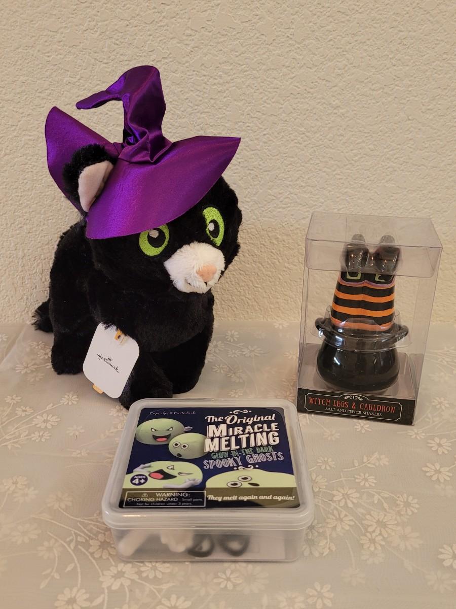 Lot 384: Black Cat Plushie, Miracle Melting Ghost and Salt & Pepper Shakers