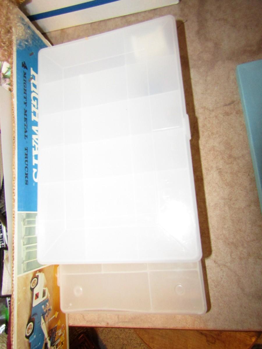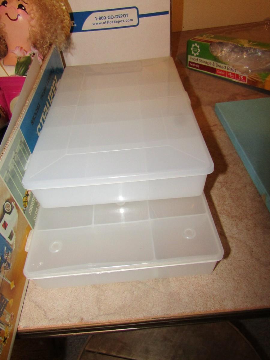 LARGE FLAT FULL OF CRAFT SUPPLIES, NOTIONS AND 2 ORGANIZING BOXES