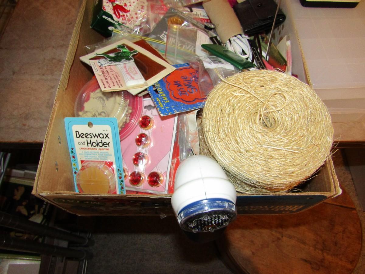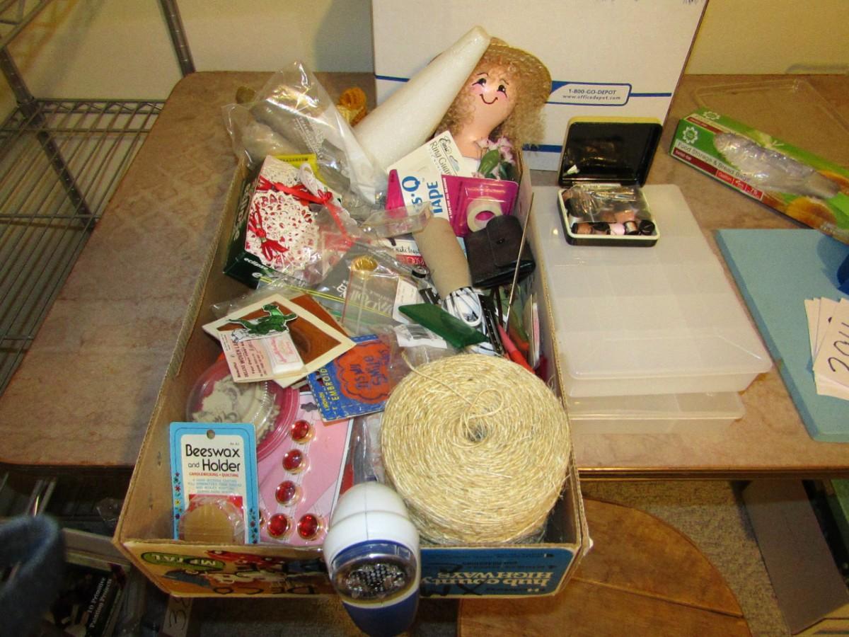 LOT 384 LARGE FLAT FULL OF CRAFT SUPPLIES, NOTIONS AND MORE