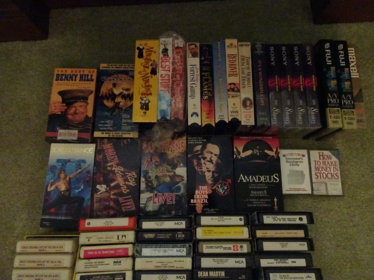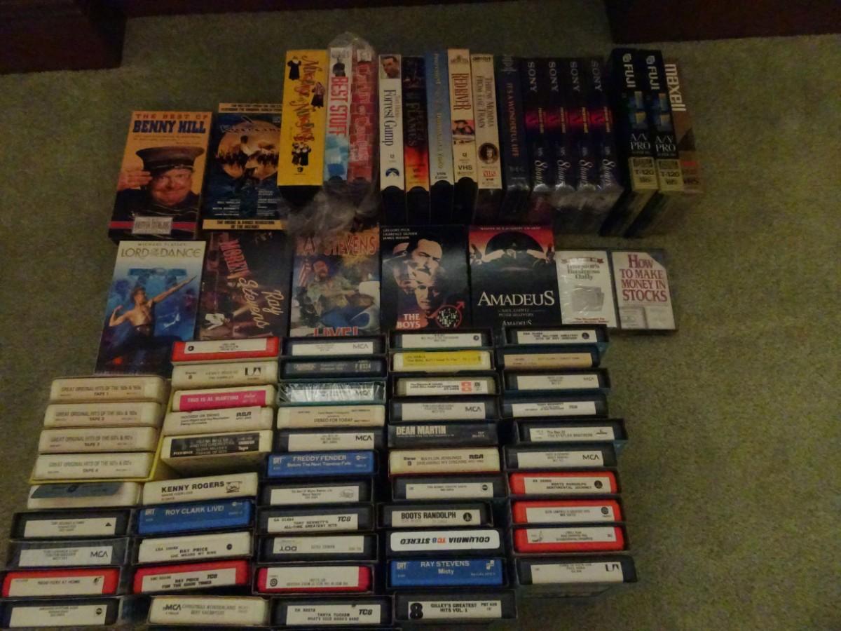LOT 384. COLLECTION OF 8 TRACK TAPES, VHS AND BLANK VHS TAPES
