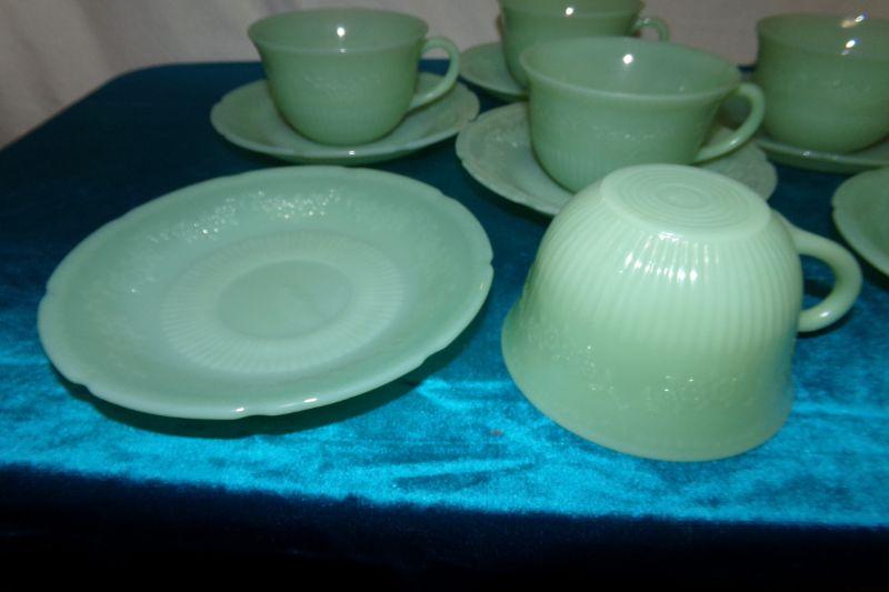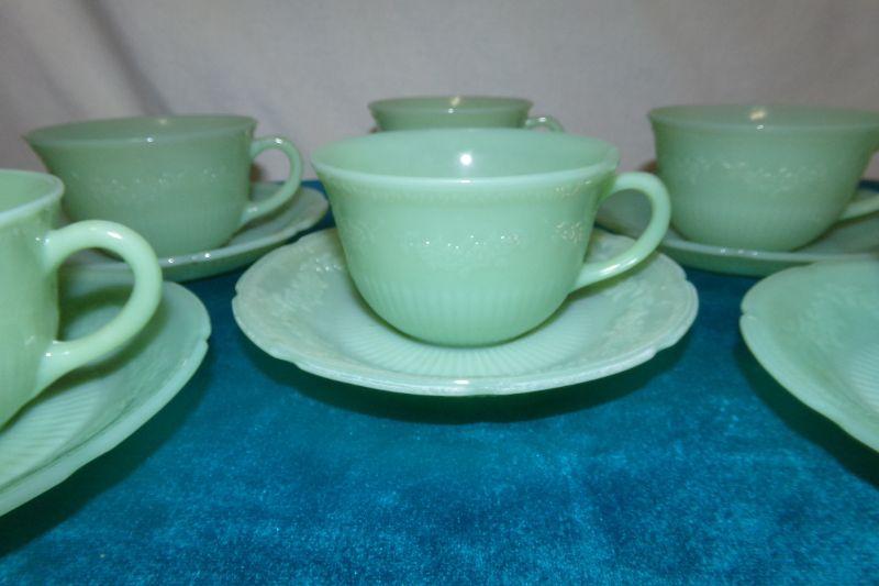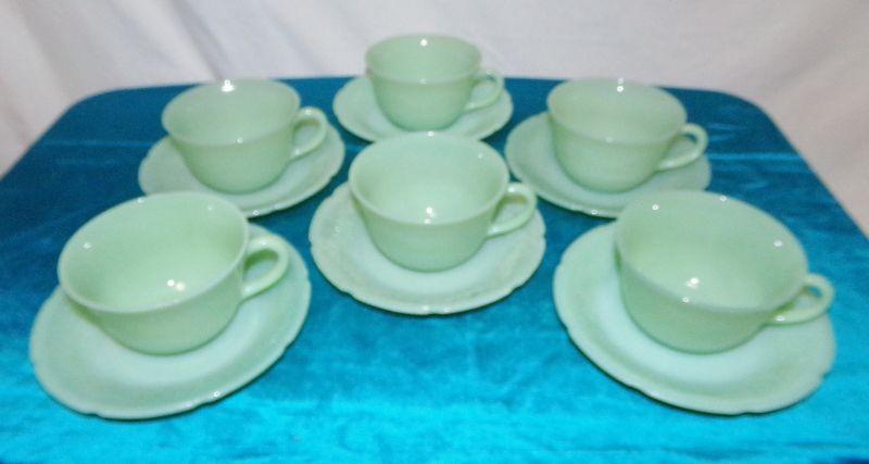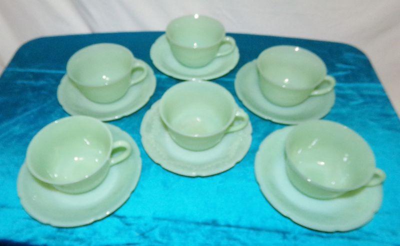 ANCHOR HOCKING JADITE 6 CUPS AND 6 SAUCERS