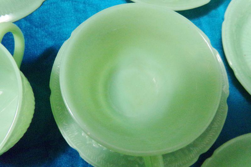 LOT 384 JADITE JADEITE CUPS AND SAUCERS