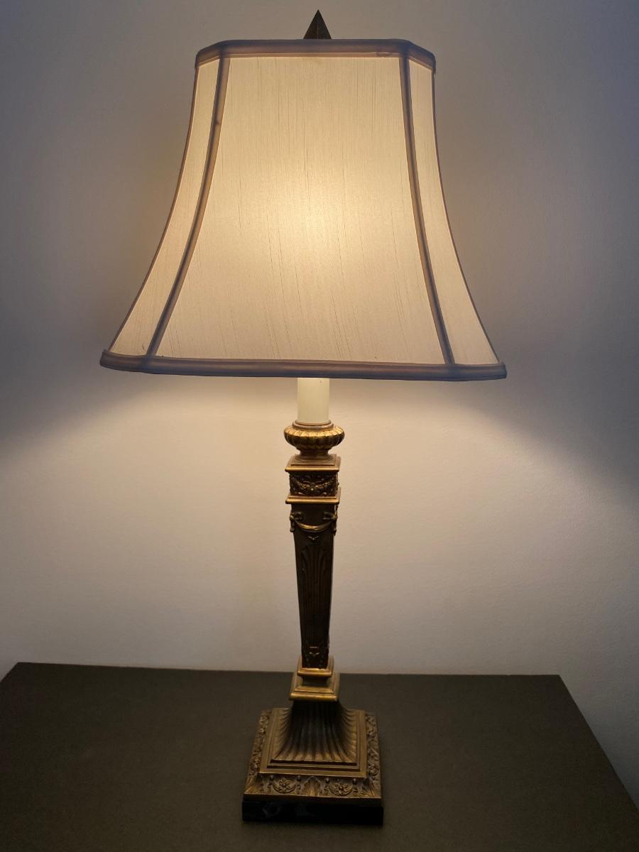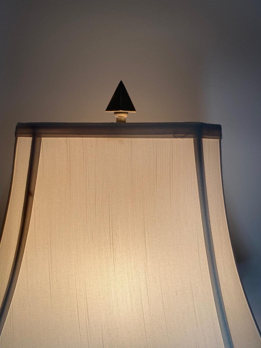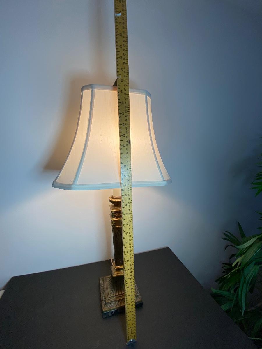 Beautiful gold lamp with ornate details by Q. M. L. Corporation. Please see all pictures as they are the best representation of the items. The pictures show condition, measurements if taken, and what is included in the lot. Due to the large amount that we photograph and the time frame, we are not always able to take measurements. All items unless noted, are pre-owned and have been used. If you purchased furniture, you must bring help. We do not allow one person to carry large furniture out on their own. Bring help, tools and a truck for the safety of our client’s homes, and your personal safety. Company policy. Thank you.