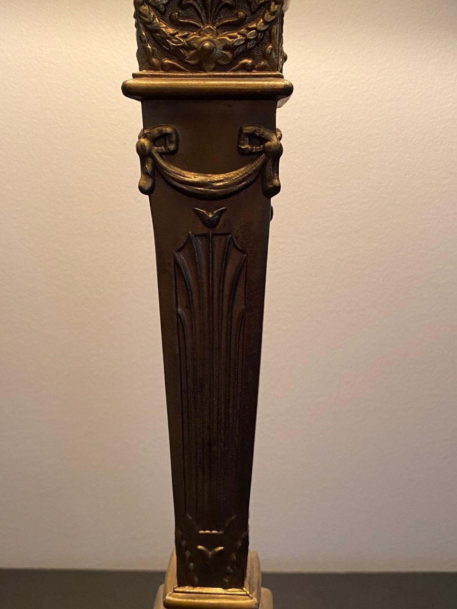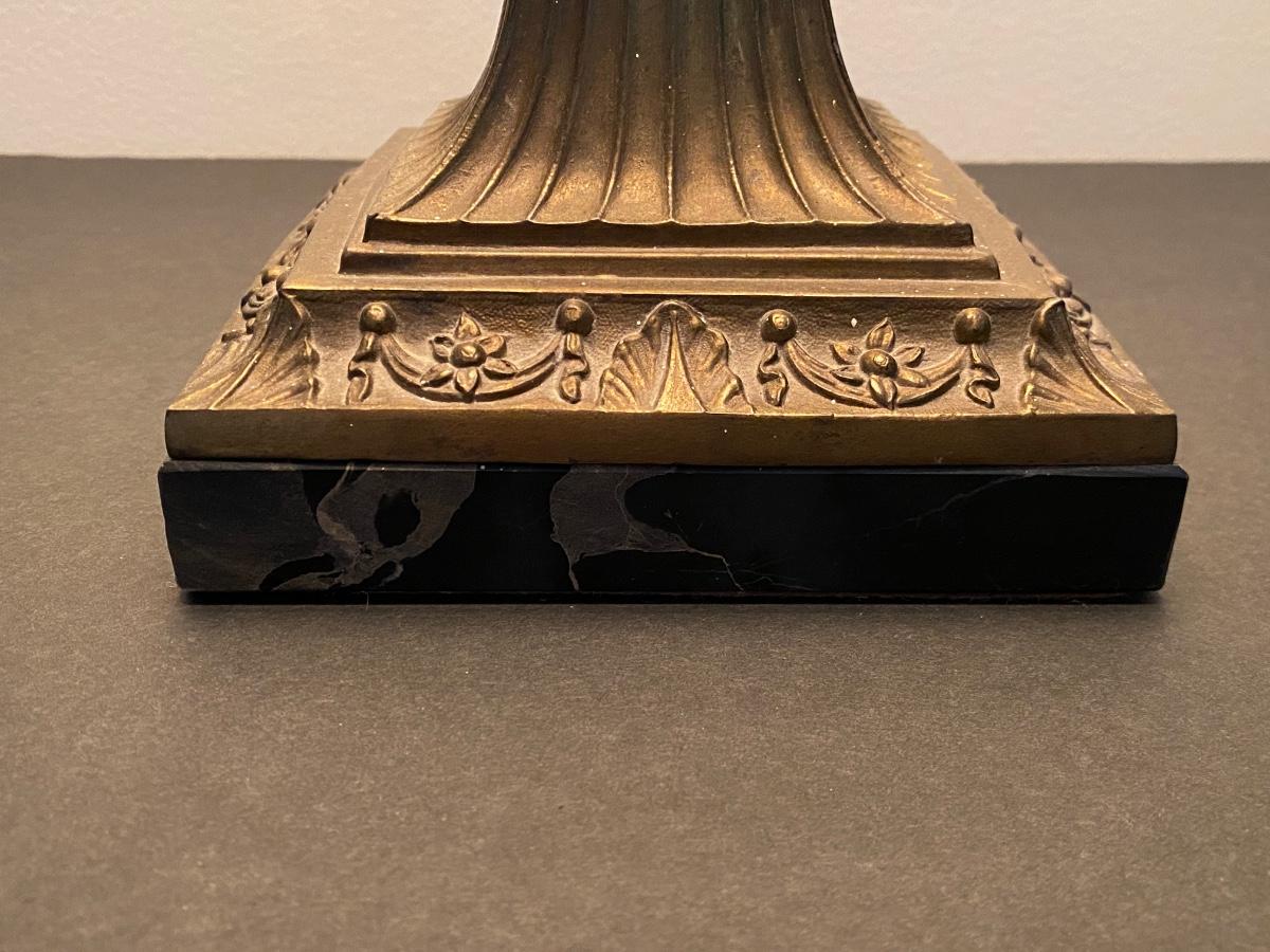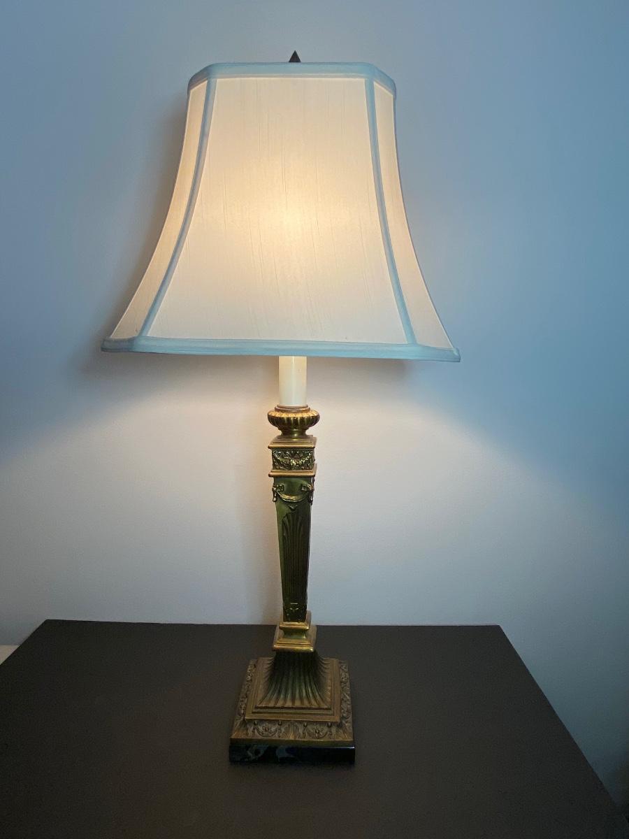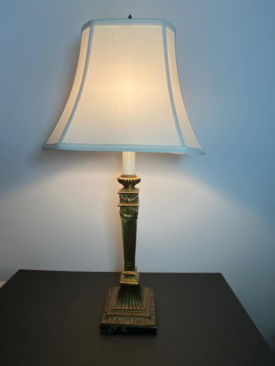 Beautiful gold lamp with ornate details by Q. M. L. Corporation. Please see all pictures as they are the best representation of the items. The pictures show condition, measurements if taken, and what is included in the lot. Due to the large amount that we photograph and the time frame, we are not always able to take measurements. All items unless noted, are pre-owned and have been used. If you purchased furniture, you must bring help. We do not allow one person to carry large furniture out on their own. Bring help, tools and a truck for the safety of our client’s homes, and your personal safety. Company policy. Thank you.