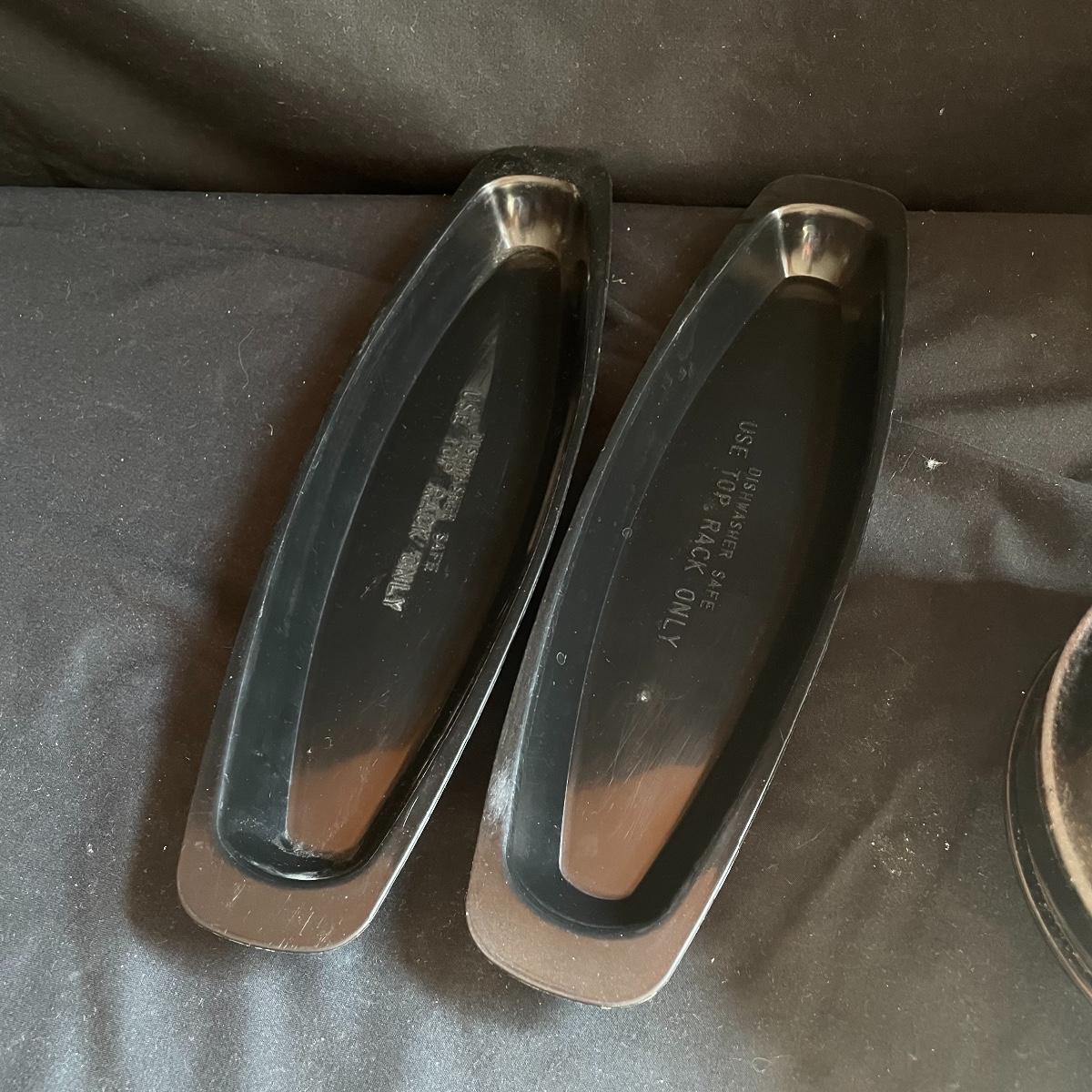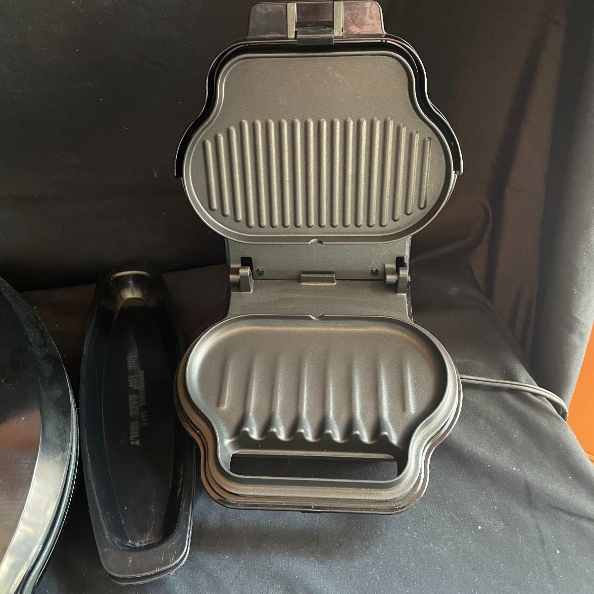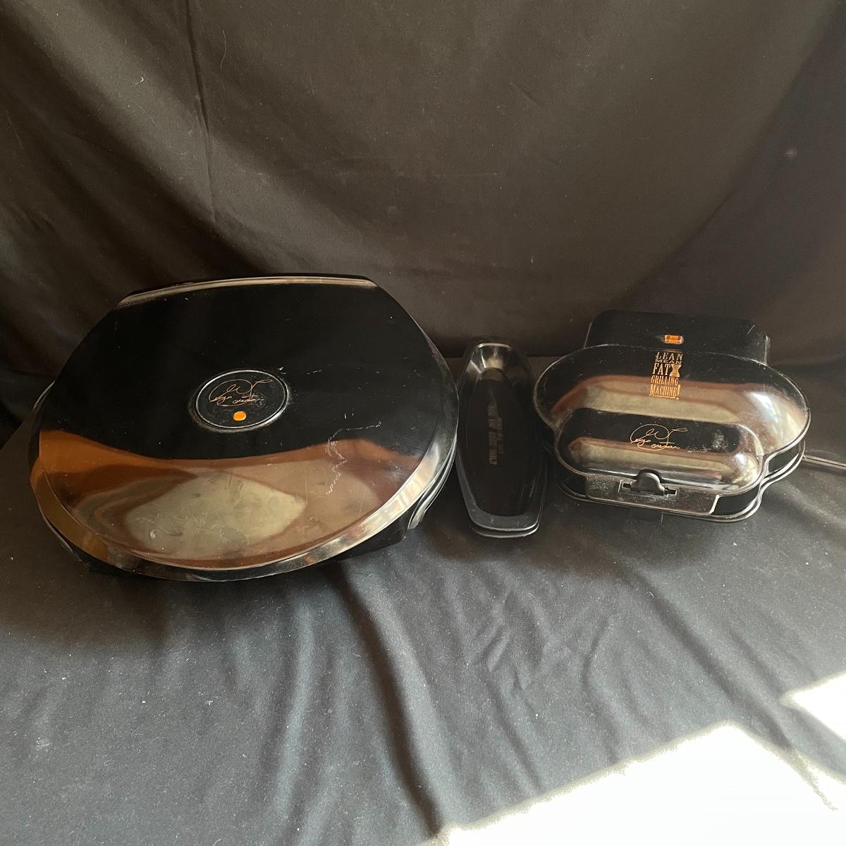 Two Lean Mean Fat Reducing Grilling Machines! Get all the flavor and keep it healthier for a few or many! The smaller has an 8” x 4”griddle and the larger is 13” x 9”. Lot includes two drip trays. Both grills turned on when tested. Local pick up only.