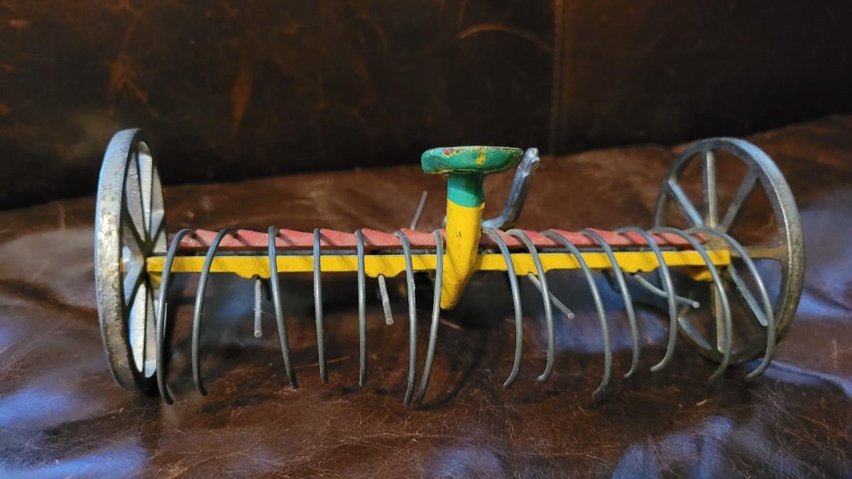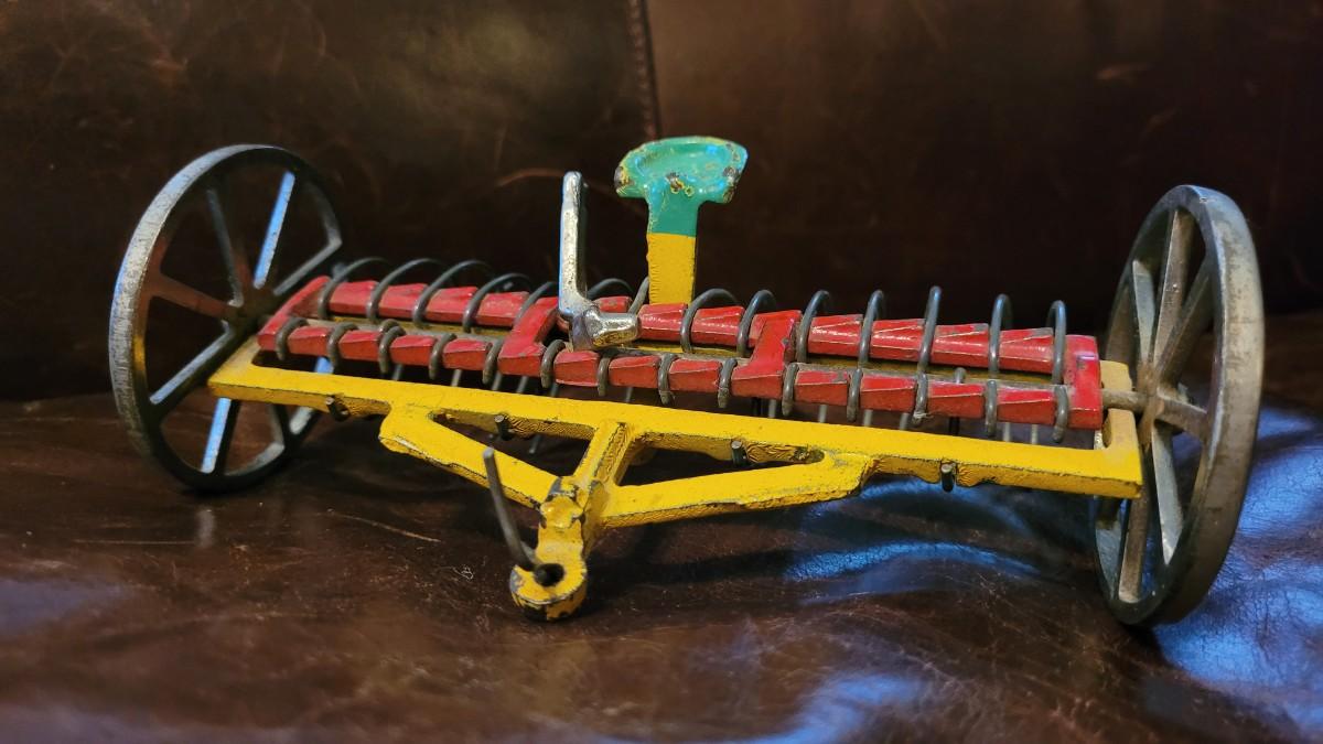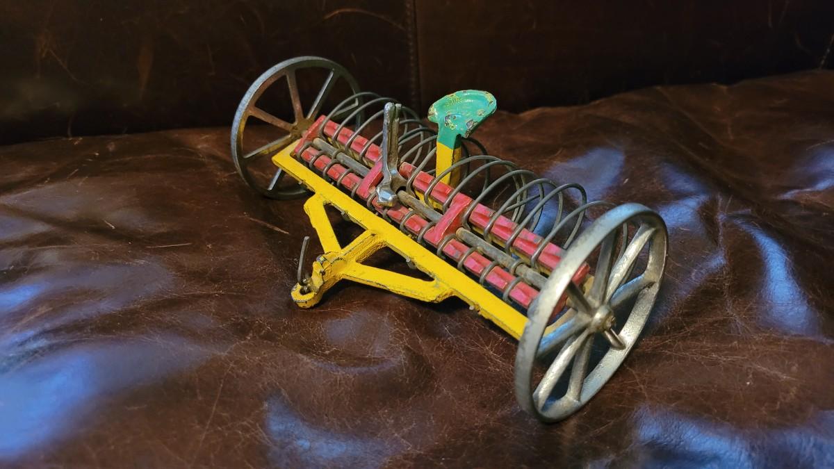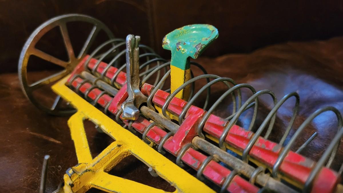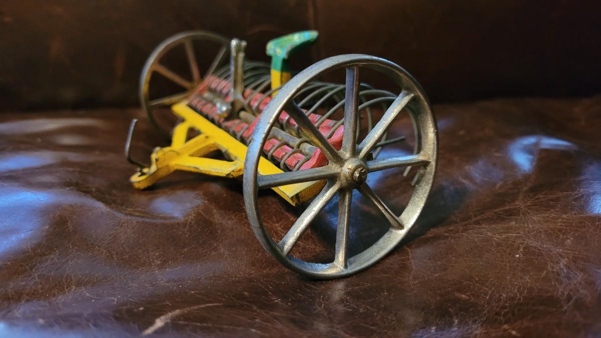 Lot 384: Vintage ARCADE TOYS 7" Cast Iron Farm Tractor Plow Toy w/ Chippy Original Paint