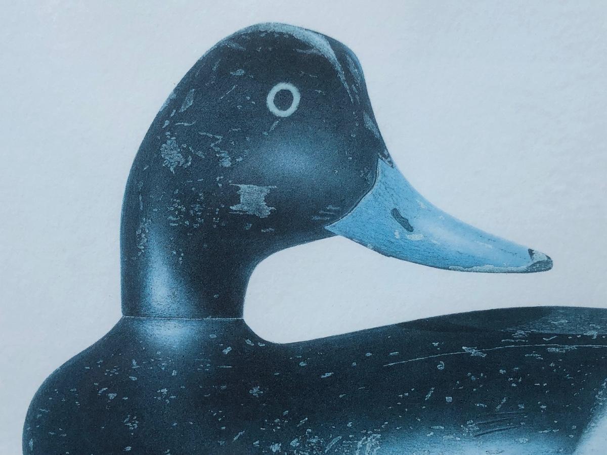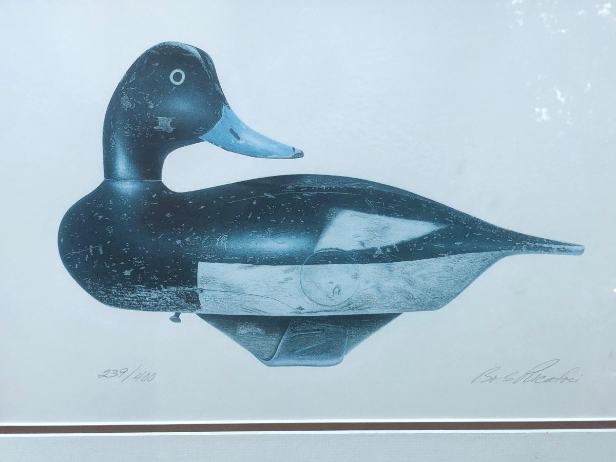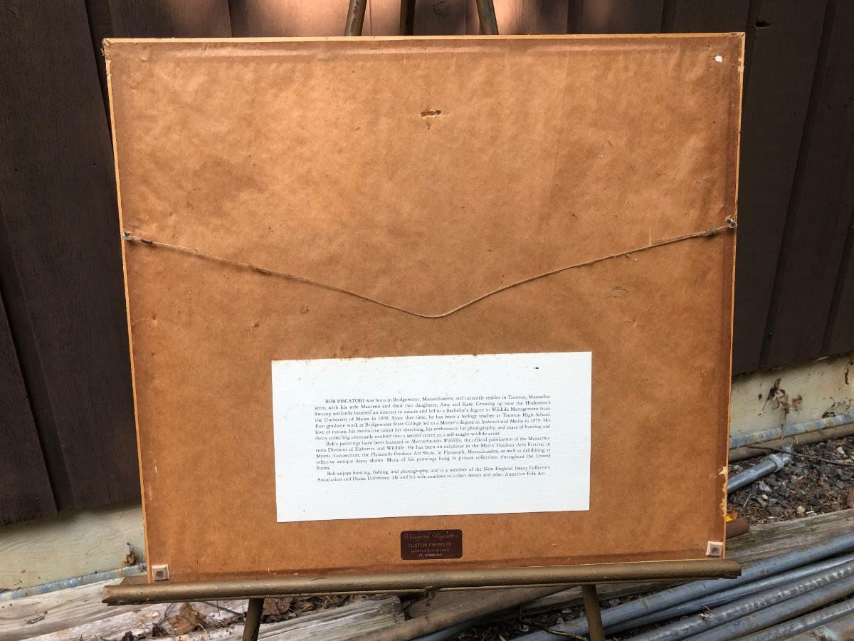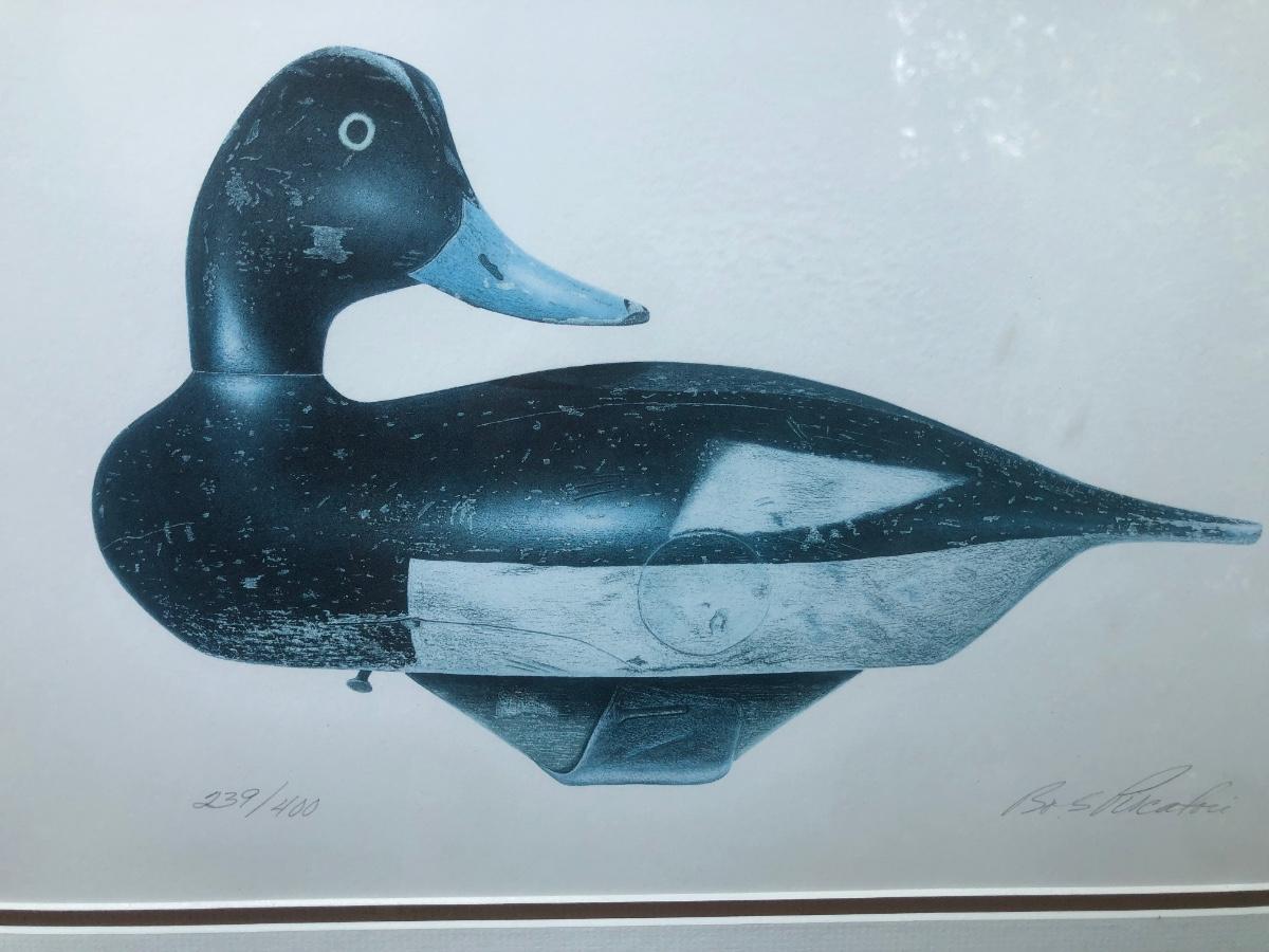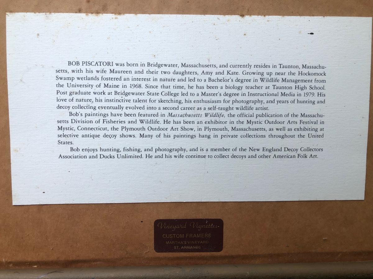 LOT 384G: 1986 Massachusetts Waterfowl Stamp Decoy Duck Photograph & Stamps Signed by Bob Piscatori (American, 20th century)