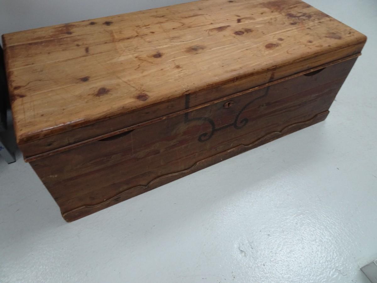LOT 385. THIS CHEST IS CLEAN IN SIDE, BUT NEEDS EXTERIOR TO BE REFINISHED