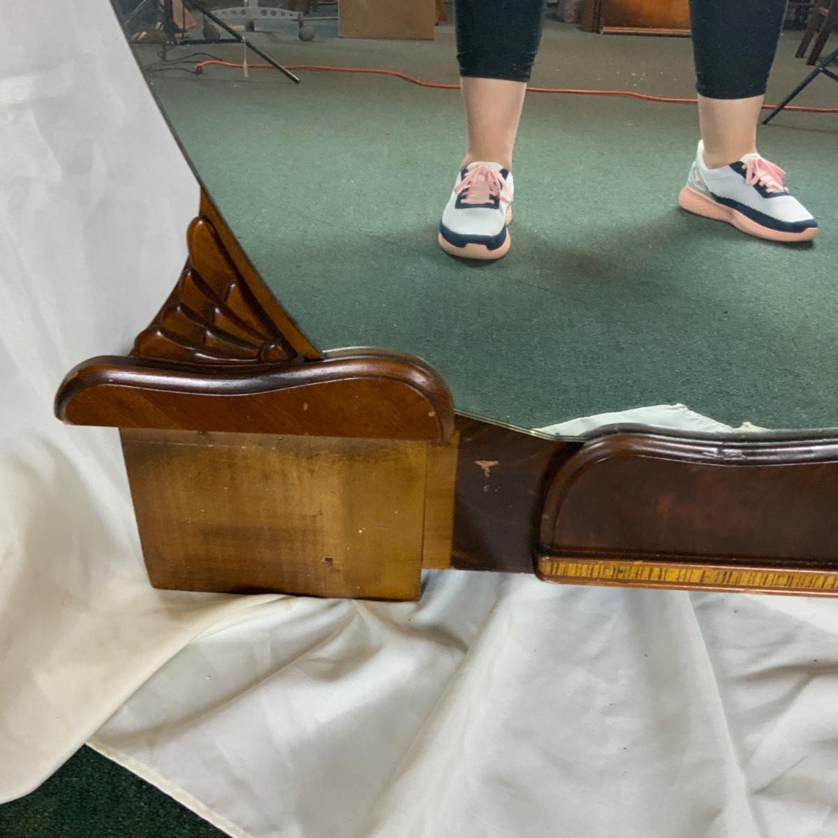 Art Deco Vanity Mirror. We have some nice vanities that would work well with this piece! //::\\ Please see photos for details and condition. No attempt has been made to hide any imperfections. All items listed in this auction are warehouse items, and need to be cleaned. A majority of the items need restoration as well. All items are sold AS IS and WITHOUT GUARANTEE. If you are uncertain about an item, DO NOT BID. Due to the nature of this online auction in-person inspection is HIGHLY recommended. All Sales are FINAL. Pick Up Times are FIRM. Please confirm with your own schedule that you can pick up in the scheduled times listed in the Terms and Conditions. Any questions please message the auctioneer. DO NOT Contact The Harp Gallery.