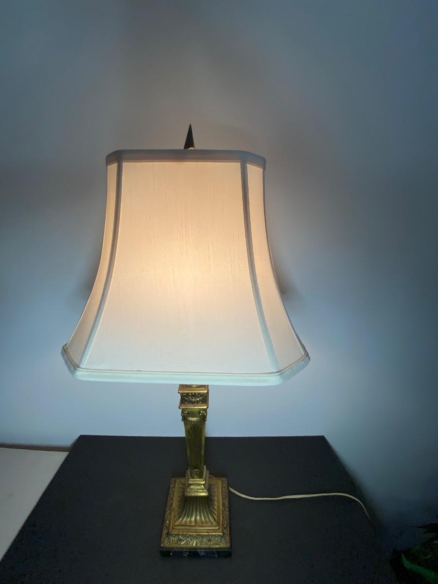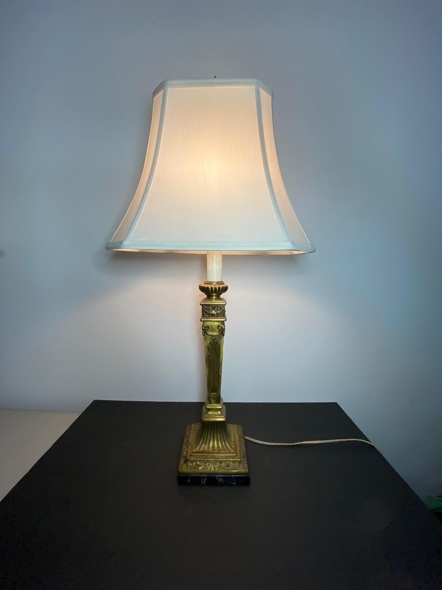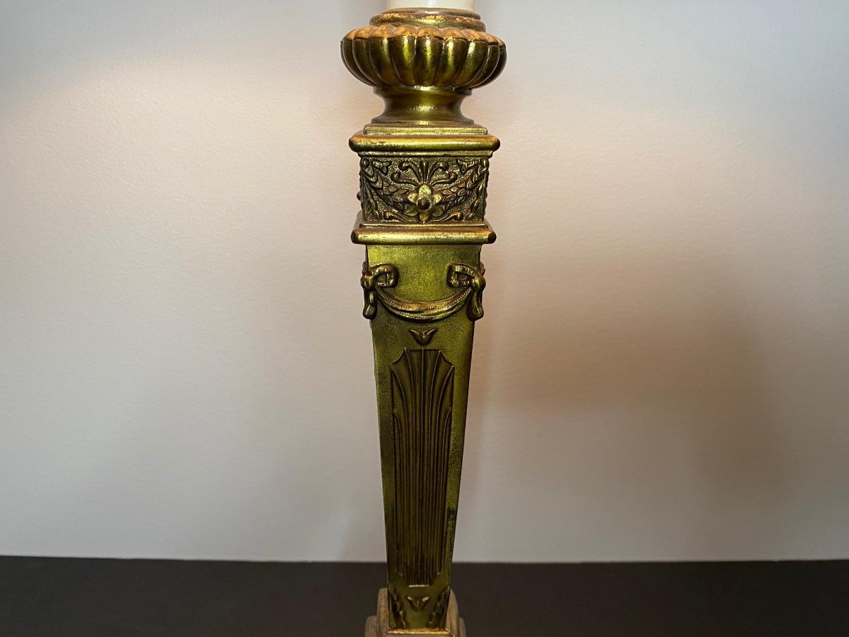 Beautiful gold vintage lamp with ornate details. Please see all pictures as they are the best representation of the items. The pictures show condition, measurements if taken, and what is included in the lot. Due to the large amount that we photograph and the time frame, we are not always able to take measurements. All items unless noted, are pre-owned and have been used. If you purchased furniture, you must bring help. We do not allow one person to carry large furniture out on their own. Bring help, tools and a truck for the safety of our client’s homes, and your personal safety. Company policy. Thank you.